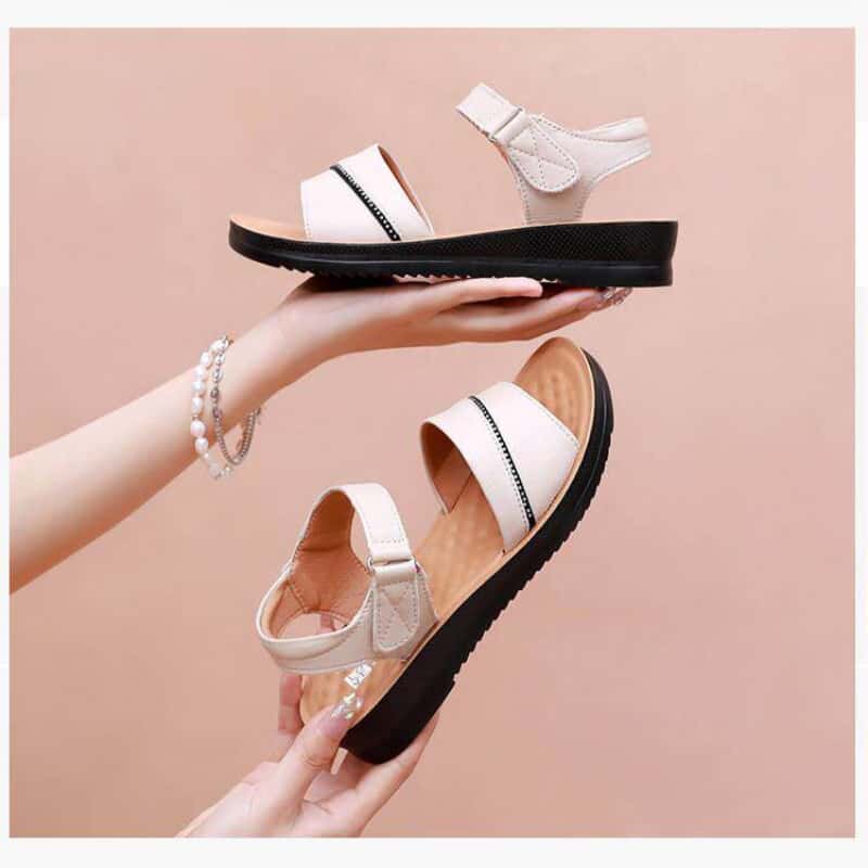 意尔康心选凉鞋女夏平底低跟中老年人女士防滑软底加宽老人凉鞋女