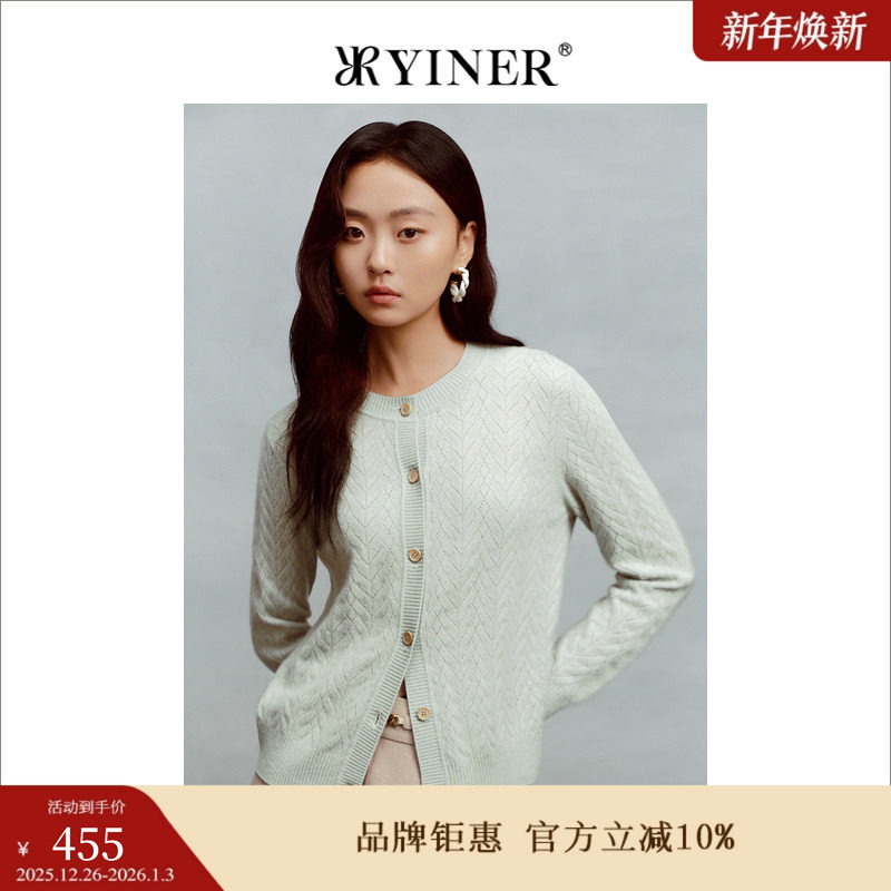 【裸感羊绒】YINER音儿女装冬季肌理绵羊毛针织开衫