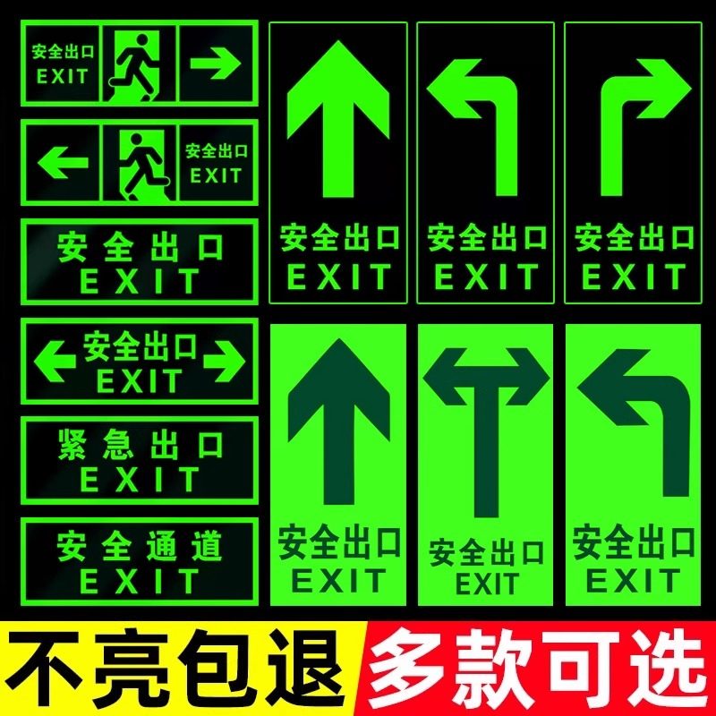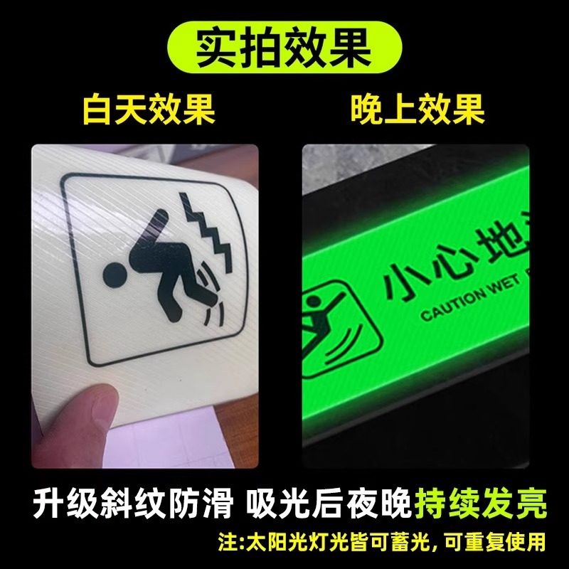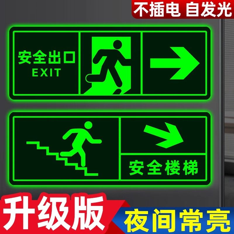 荧光贴纸高级反光贴楼道楼层安全出口地贴安全通道指示牌地贴警示牌安全出口标识牌小心地滑提示牌夜光免接电
