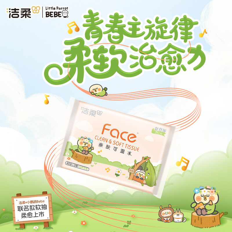 洁柔粉face抽纸小鹦鹉联名款卫生纸巾40抽10包便携式餐巾纸面巾纸