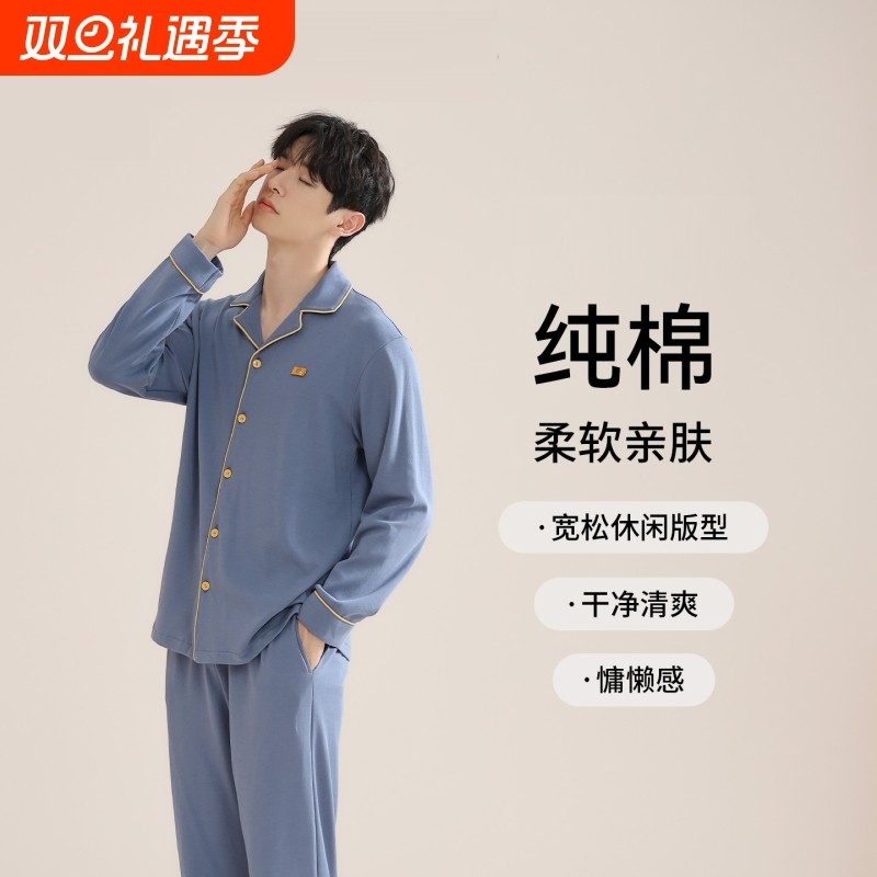 男士睡衣春秋款纯棉长袖2025年新款男式春秋季大码家居服套装柔软