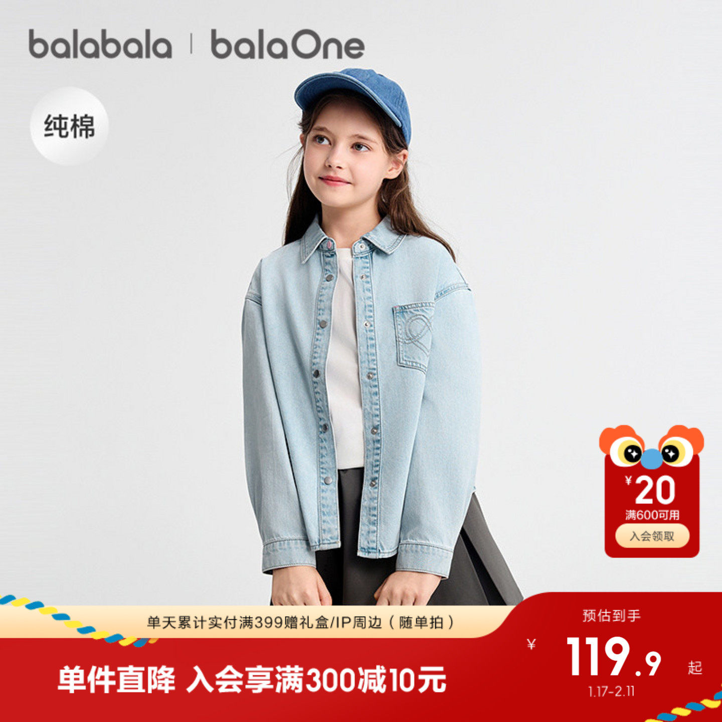 巴拉巴拉童装女童衬衫儿童长袖2026新款春秋装全棉牛仔衫舒适外套