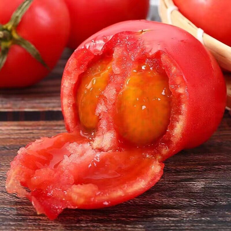 内蒙古五原黄柿子新鲜现摘沙瓤自然熟黄色西红柿水果番茄生吃蔬菜