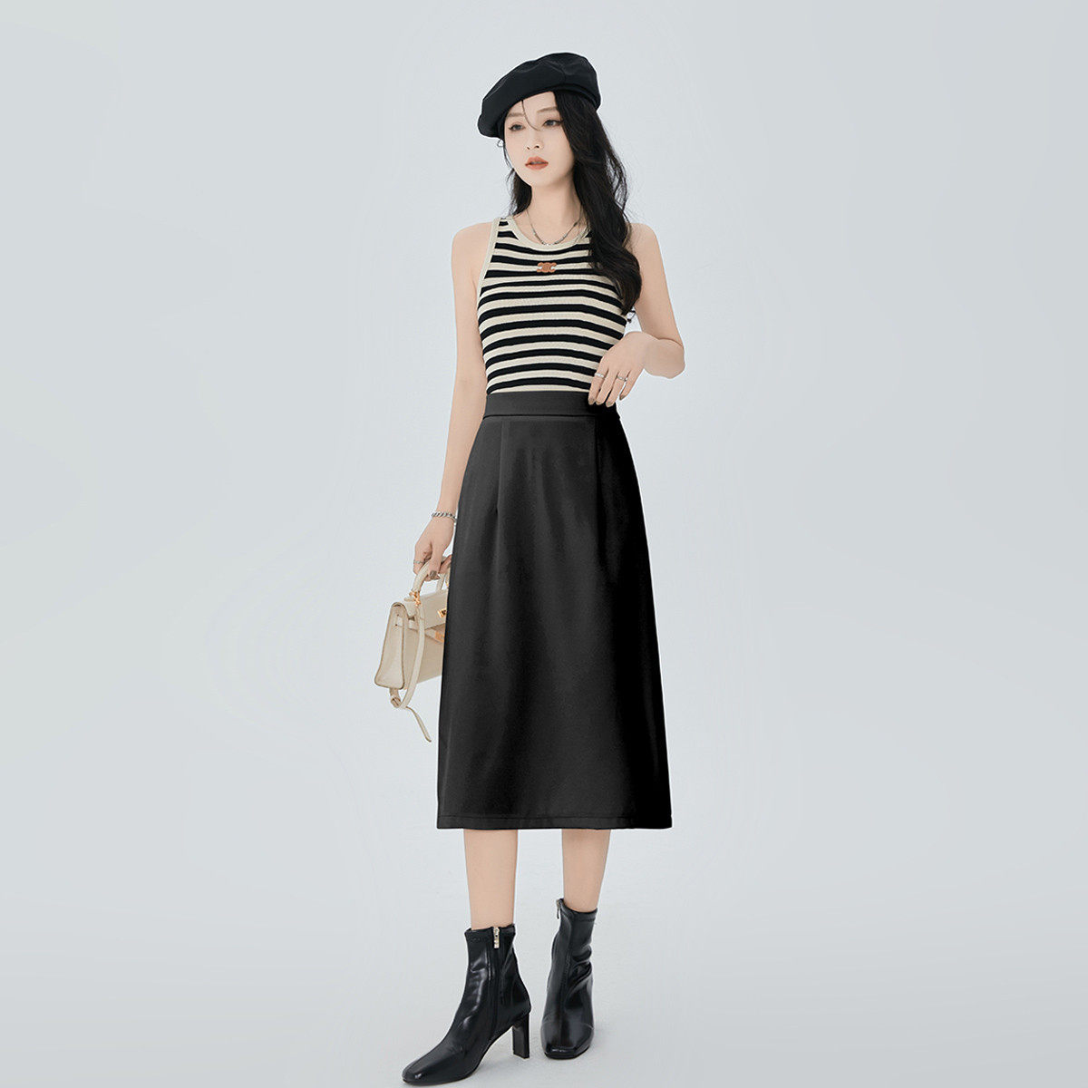 one more半身裙女2025秋季新款a字百搭高腰显瘦休闲中长款包臀裙