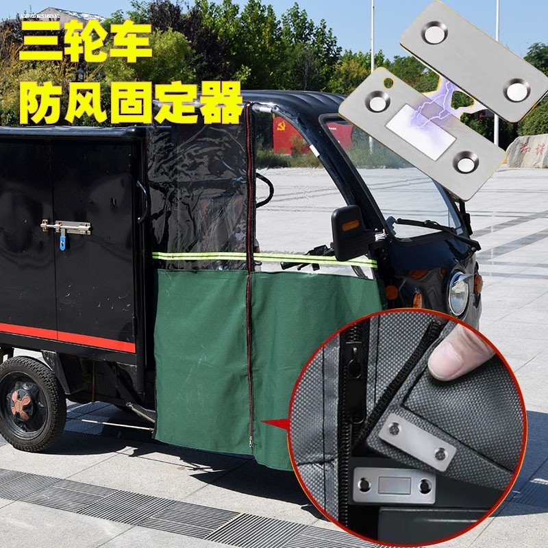 三轮车棚固定器电动车快递车车棚遮雨门帘围帘前车篷挡风雨帘磁吸