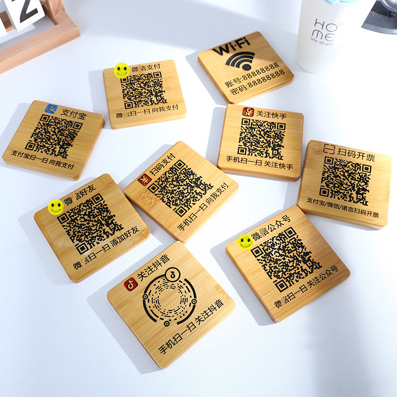 创意定制二维码扫码牌支付宝支付牌实木雕刻收款扫码付款摆台挂牌