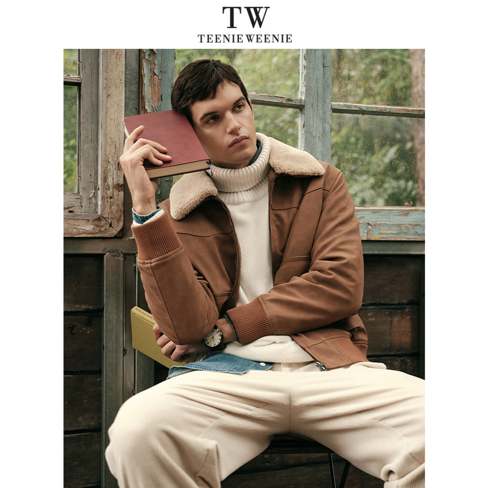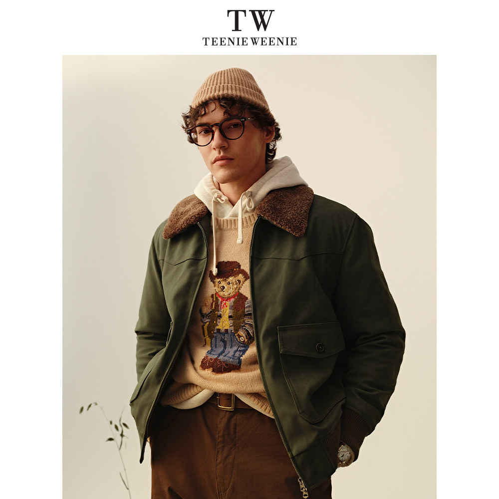 Teenie Weenie小熊男装日常美式通勤复古仿羊羔毛翻领夹克