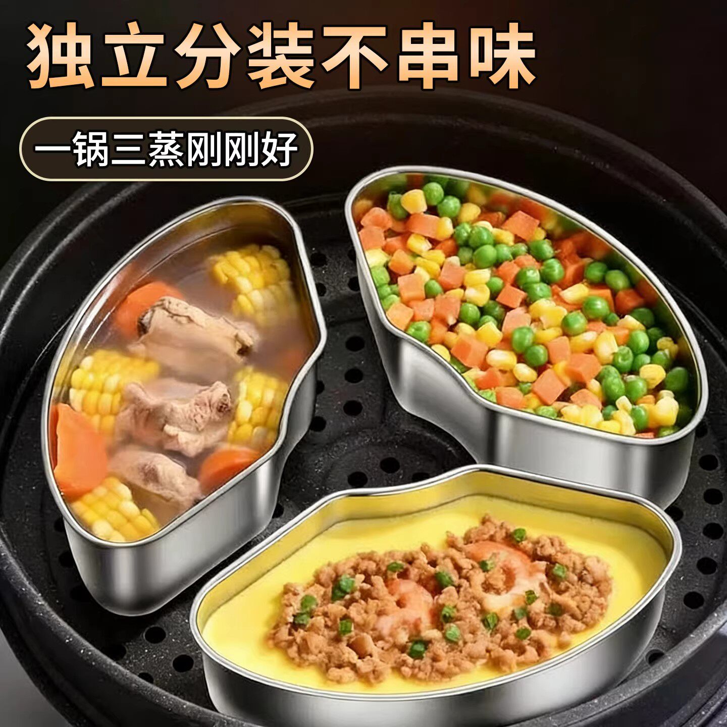 304不锈钢扇形蒸盒电饭煲蒸碗小煮锅分格蒸盘家用蒸笼屉蒸菜扇形
