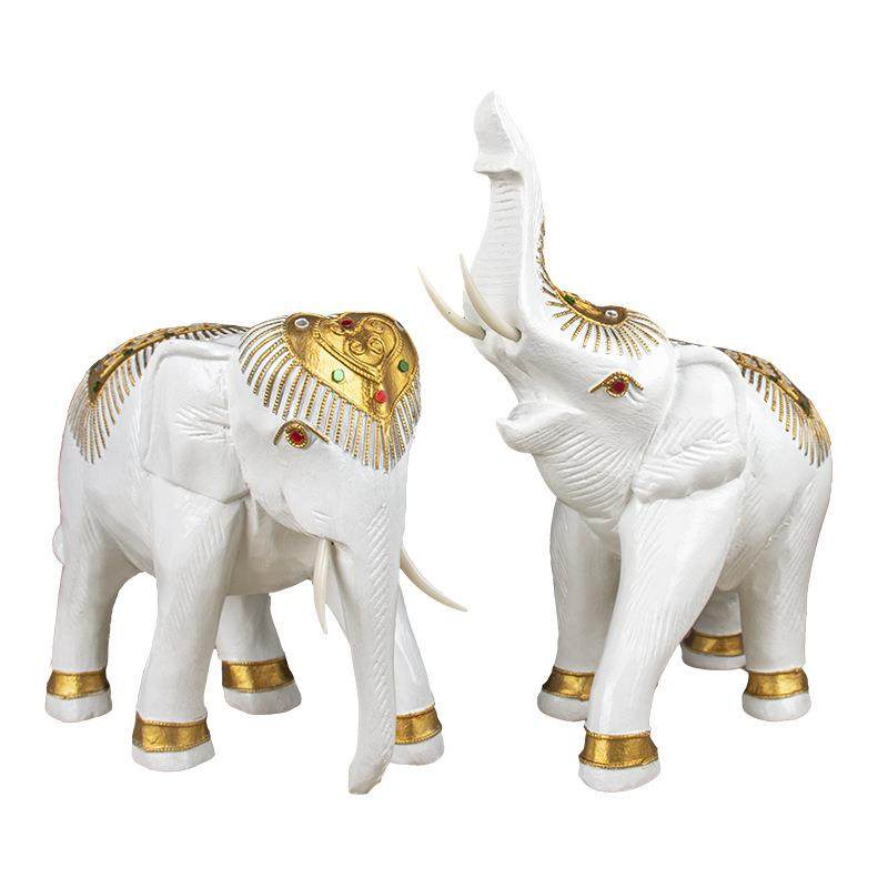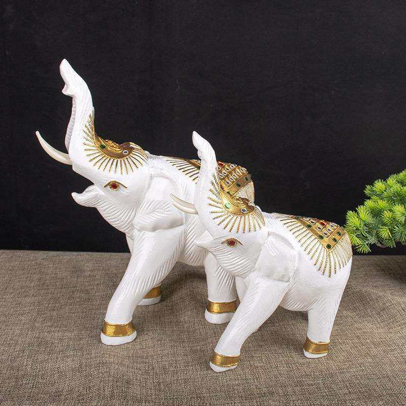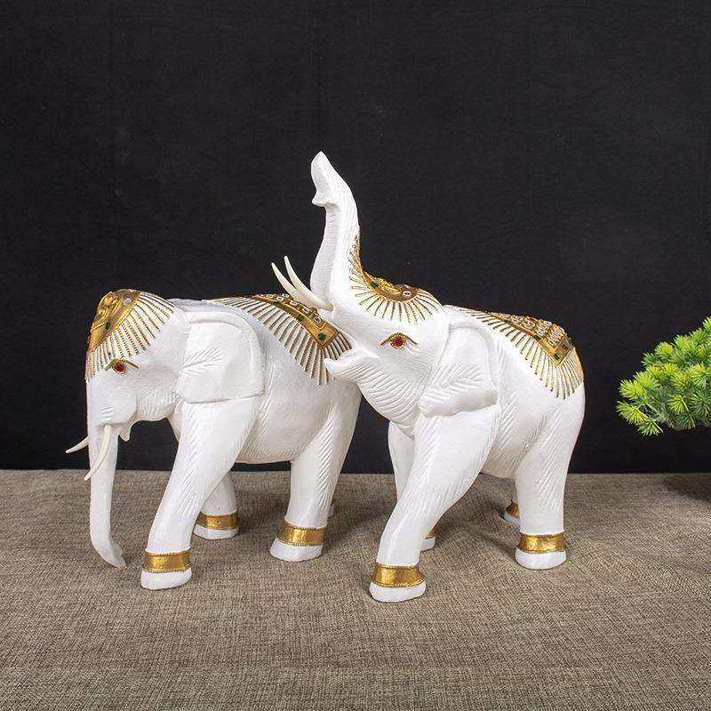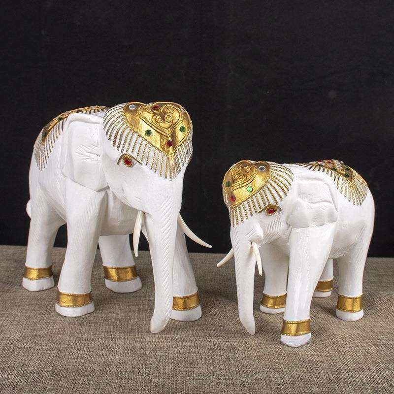 泰国木雕白色大象摆件东南亚特色工艺品客厅电视柜泰式实木装饰品