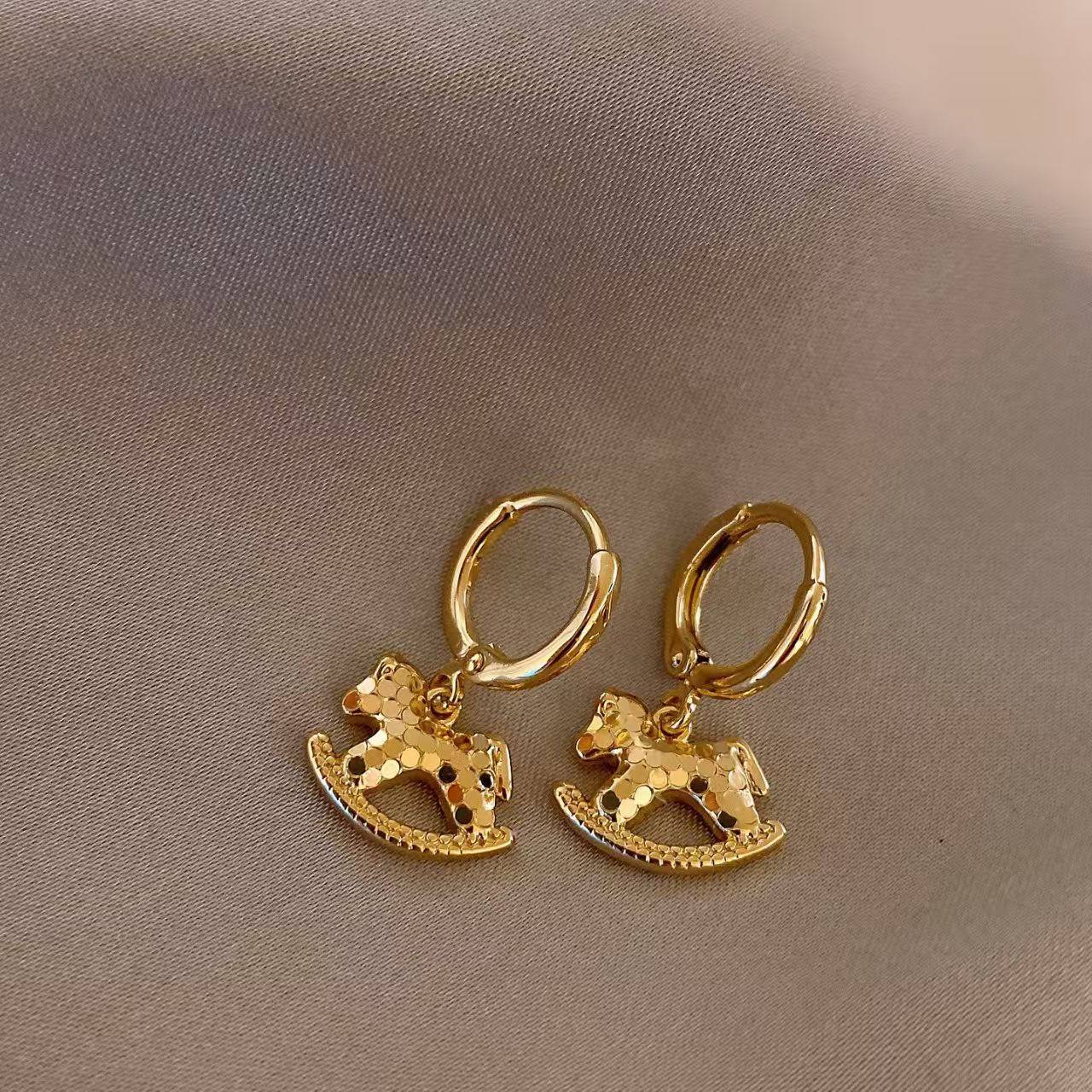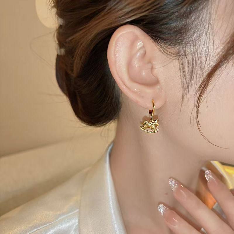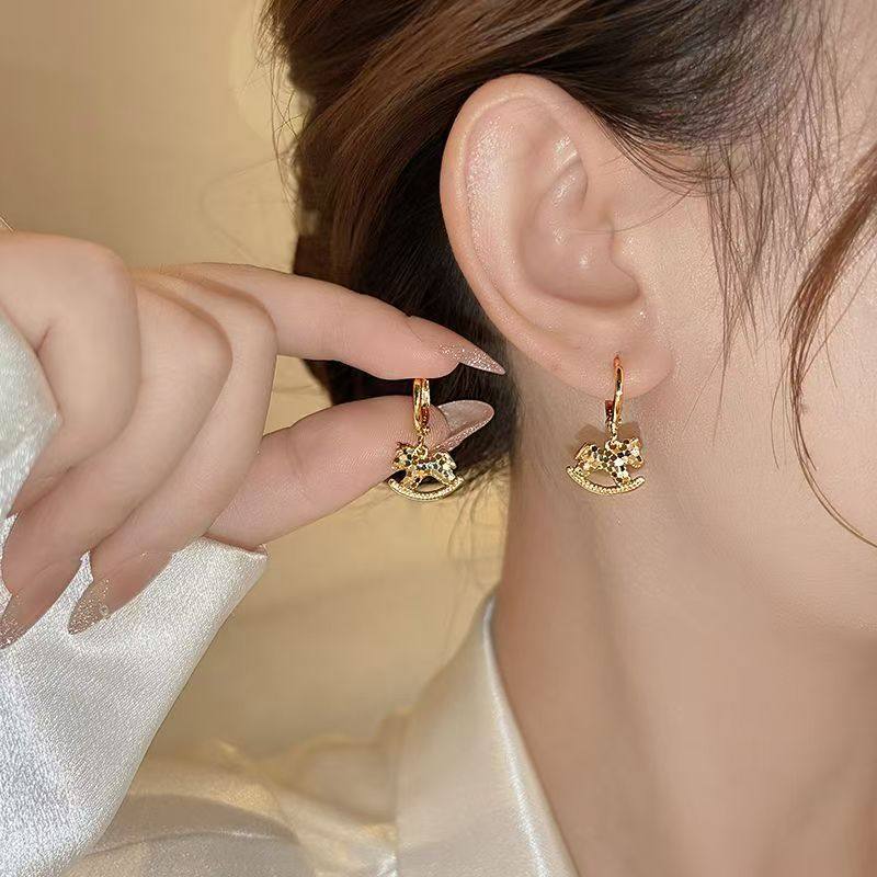 金色碎碎冰木马耳坠耳环女巨好看耳饰精致耳钉2025新款爆款高级感