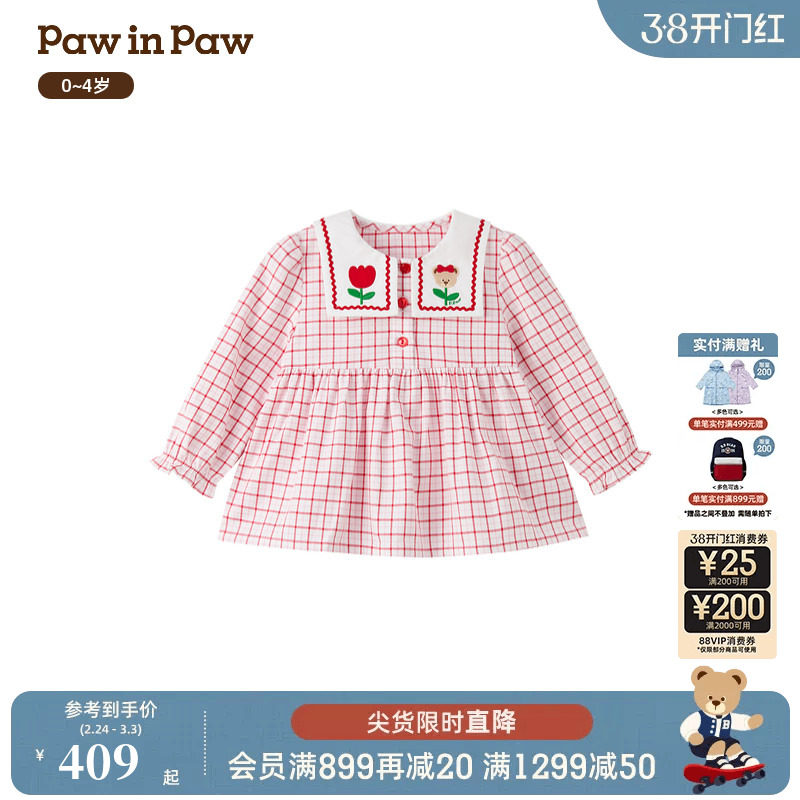 【全棉】PawinPaw卡通小熊童装26年新款女宝宝全棉翻领衬衫宽松
