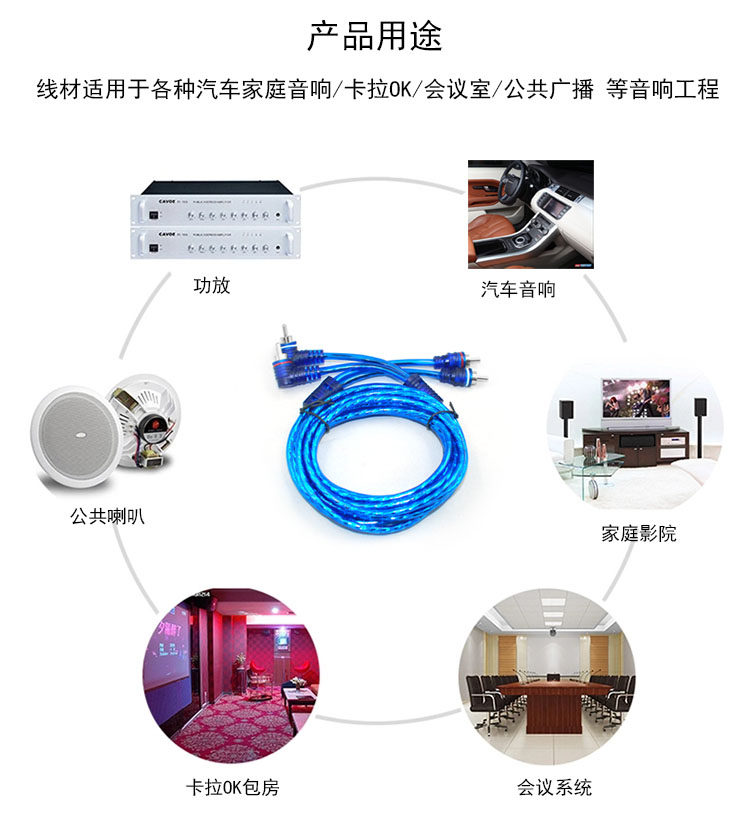 功放音频汽车音响改装低音炮连接莲花RCA双头弯插信号线