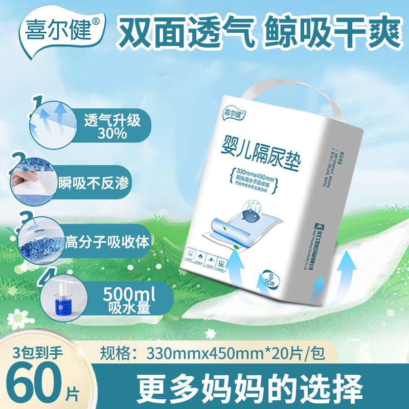 喜尔健婴儿隔尿垫一次性新生儿护理床垫宝宝防水透气小号纸尿片