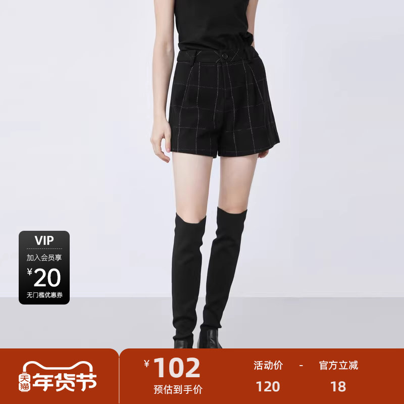 S·DEER圣迪奥女装冬季复古休闲撞色格纹A字毛呢短裤S21480914