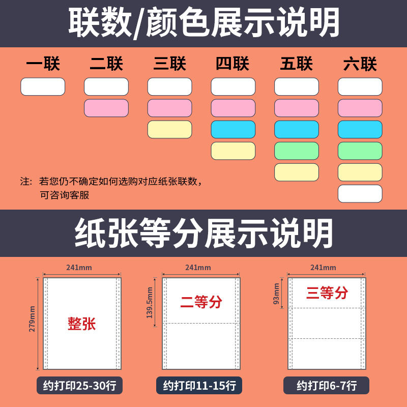 针式三联打印纸二等分电脑直发二联三等分针式打印机专用四联五联六联会计发票清单必备出入库送货票据专用纸