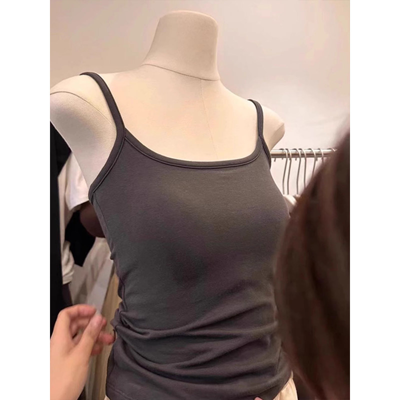 美式小吊带背心女内搭夏季外穿带胸垫美背一体打底衫上衣穿搭服饰