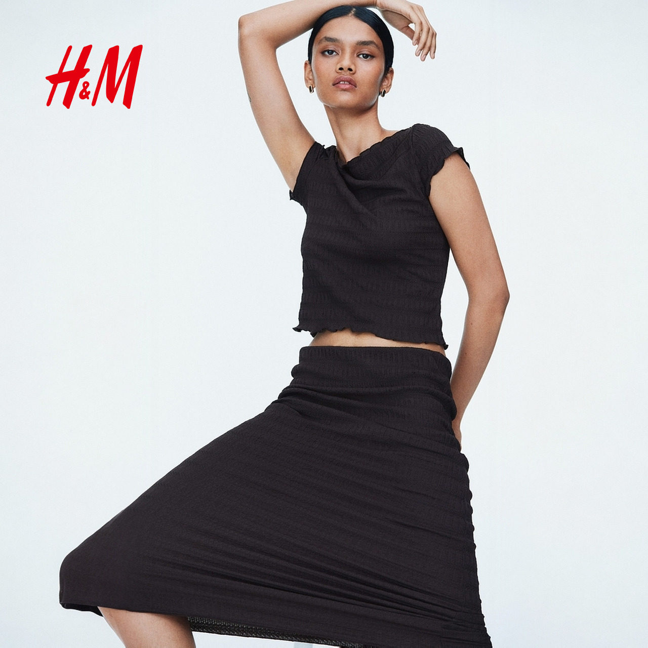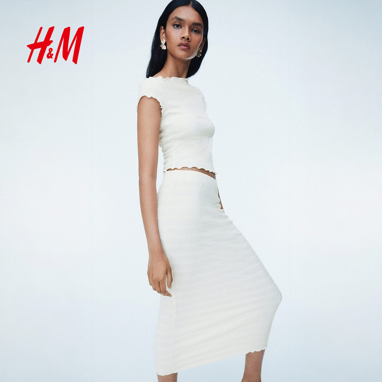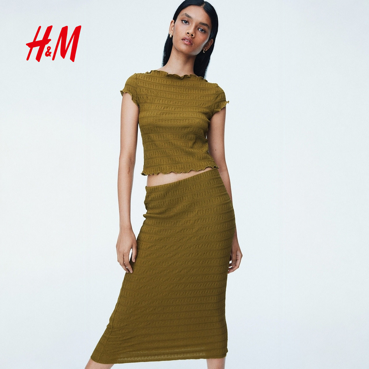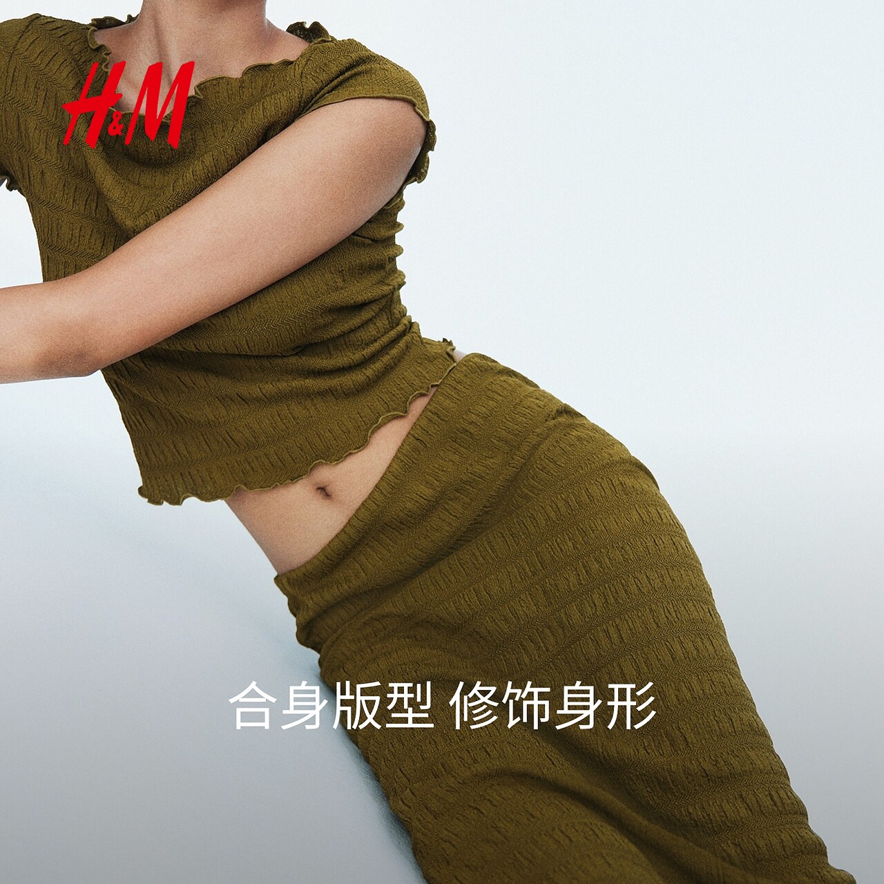 HM女装半身裙春季时尚气质潮流柔软缩褶半身裙1310332