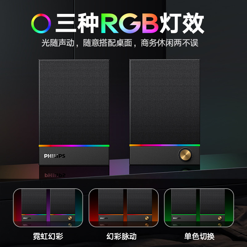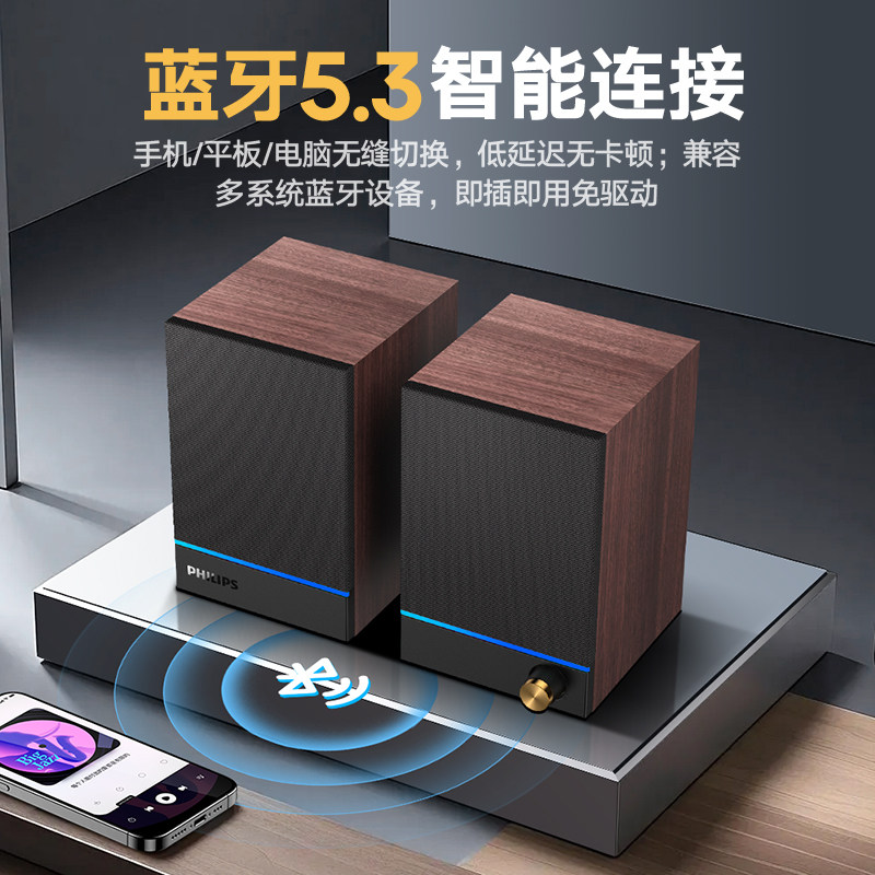 飞利浦SPA2200电脑音箱双声道立体声桌面笔记本蓝牙多媒体音响USB