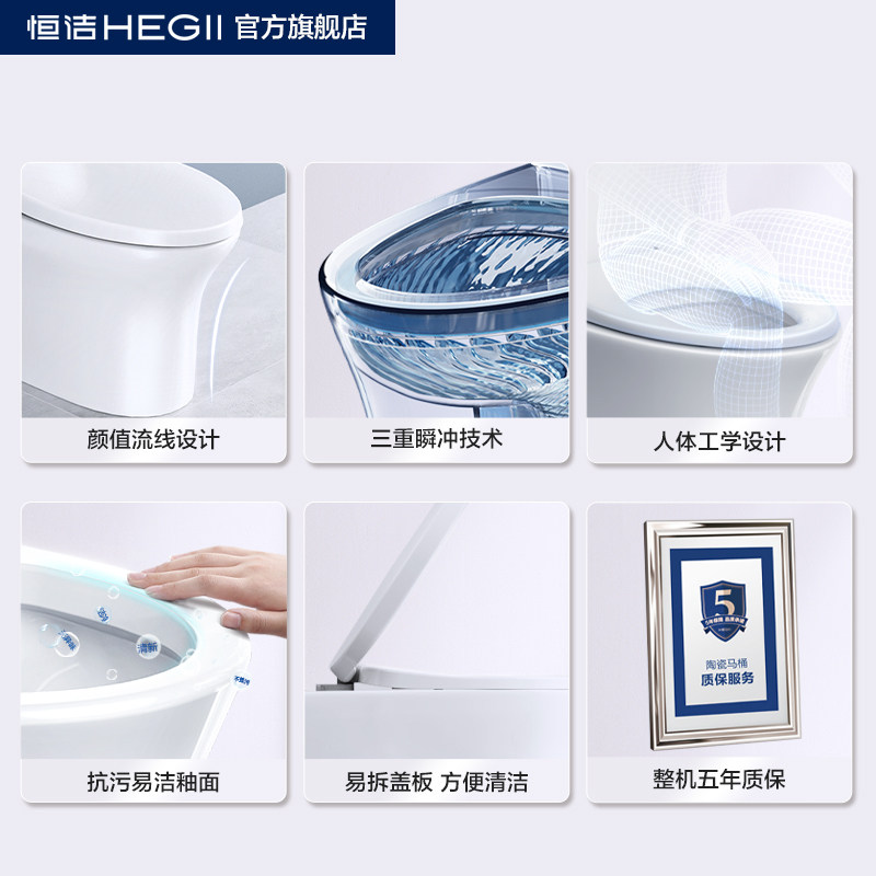 HEGII/恒洁卫浴虹吸式抽水马桶小户型冲力防臭陶瓷坐便器