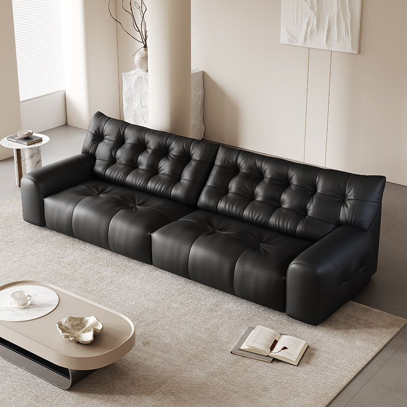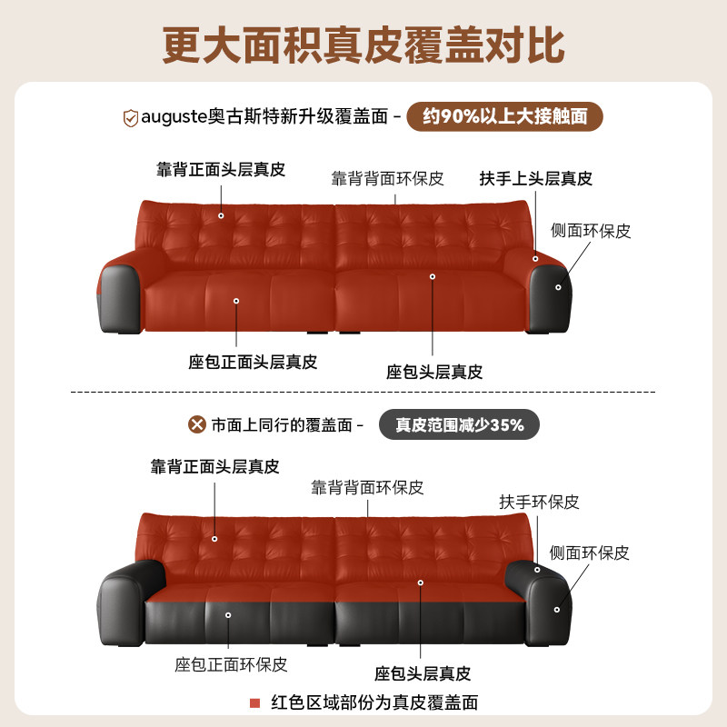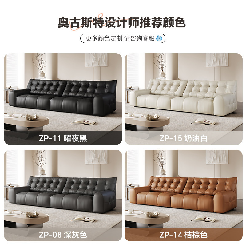 大黑熊真皮沙发三人位大平层现代简约客厅直排横厅豆腐块真皮沙发