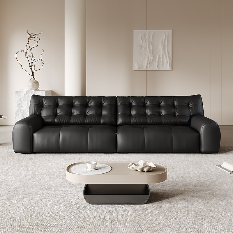 舒梵银河沙发/黑色纳帕厚牛皮沙发/中古包豪斯北欧极简直排小户型