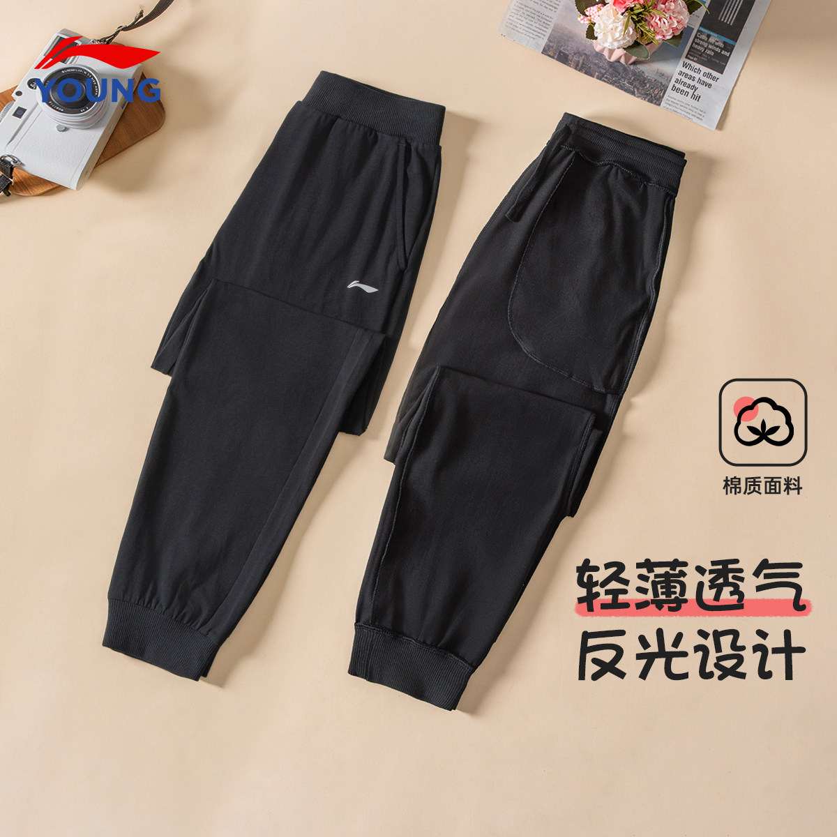 李宁儿童运动裤薄款2026新款男童卫裤青少年宽松透气官方正品长裤