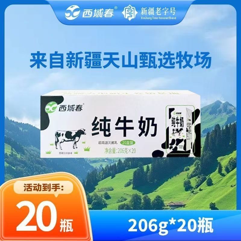 新日期新疆西域春纯牛奶整箱206克*20盒成人儿童学生营养早餐牛奶