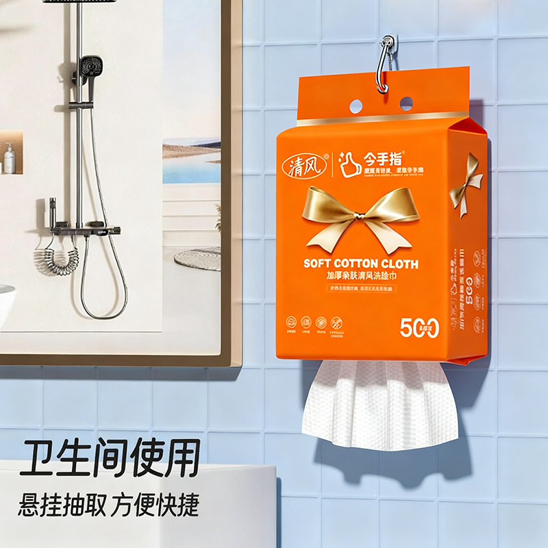 清风壁挂抽取式洗脸巾一次性擦脸悬挂式家用洁面巾母婴便携式小包
