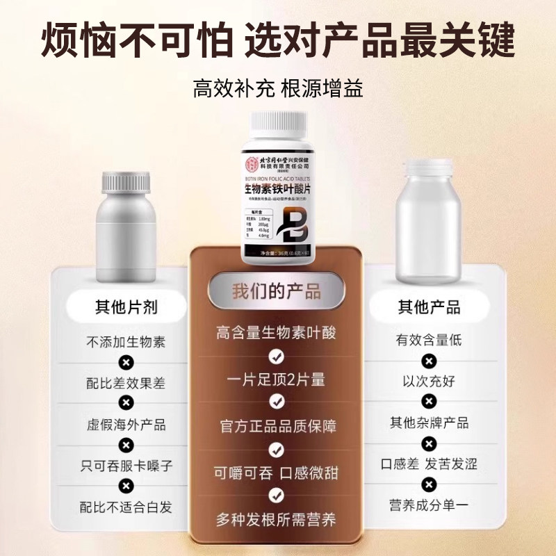 同仁堂生物素h维生素b6b7防脱发生发复合b族叶酸片官方正品旗舰店