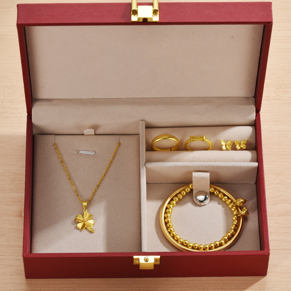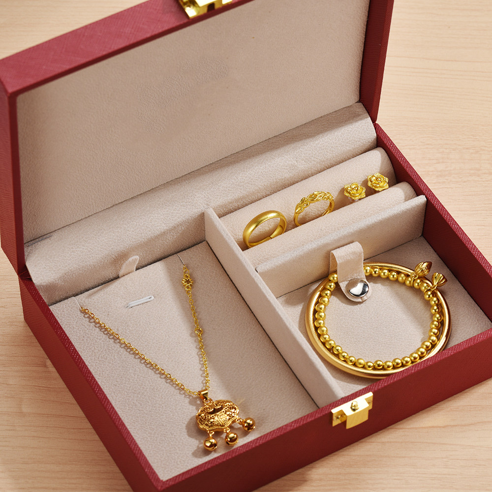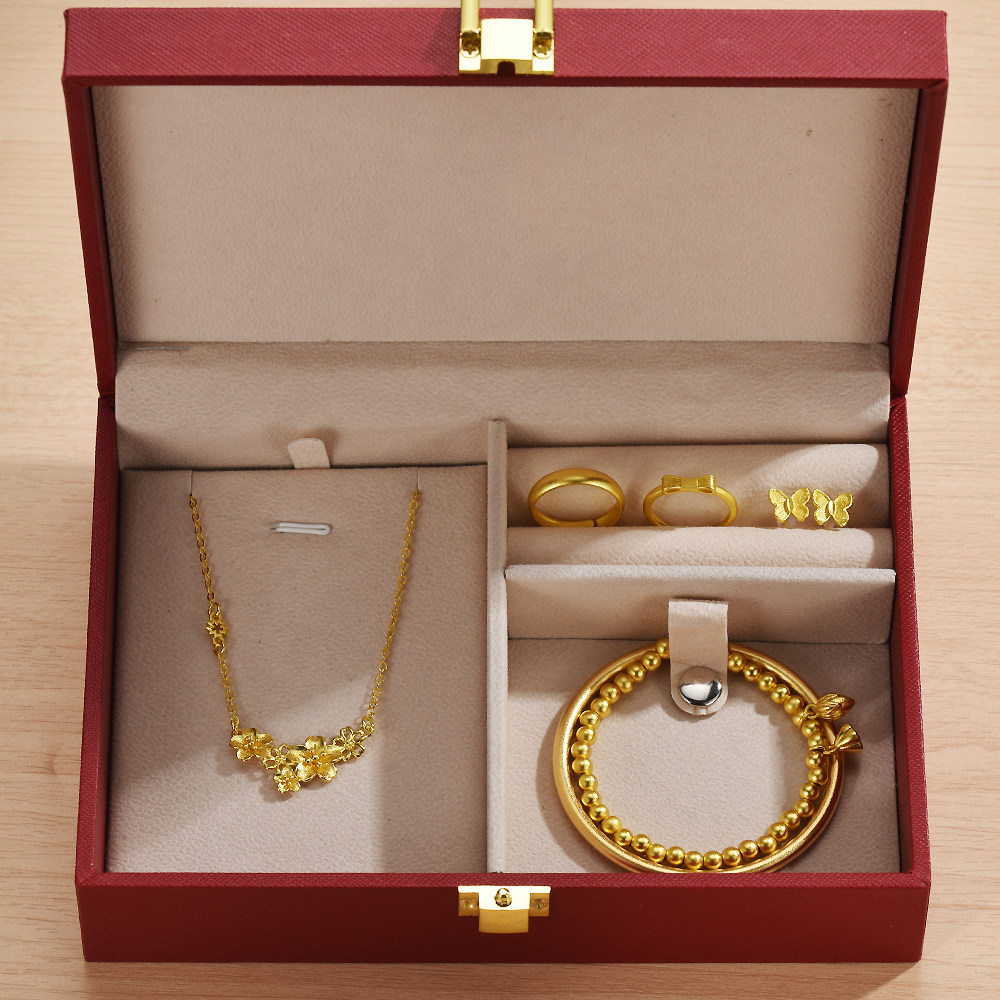 假三金五金首饰一套古法素圈新款福字仿真项坠订婚结婚礼八宝罗盘