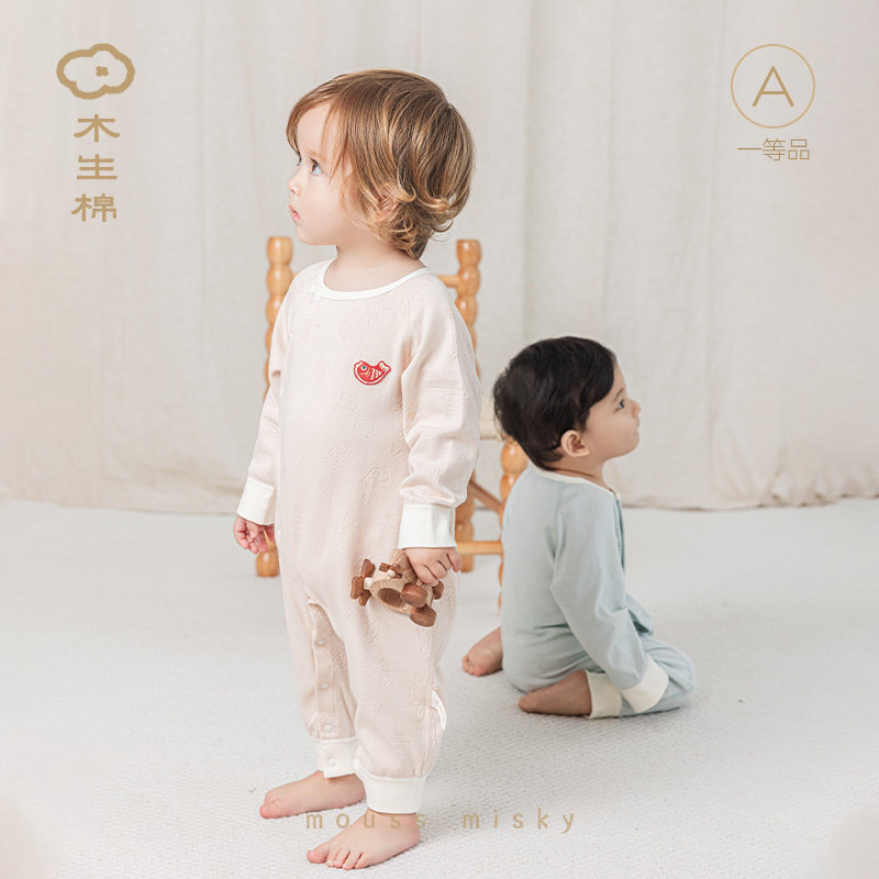 木生棉男女宝宝长袖连体衣春秋季婴儿贴身连体哈衣爬服国风睡衣