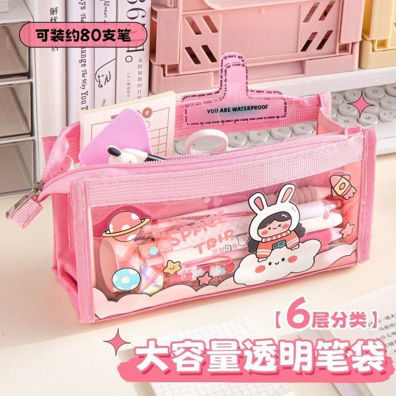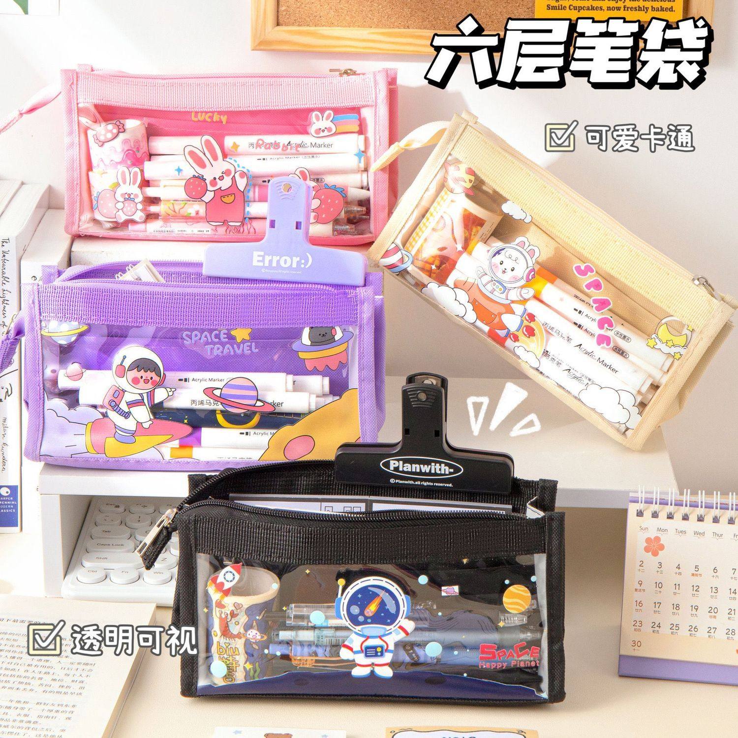 6层透明笔袋大容量2025年新款ins风简约高颜值初中高中生小学生