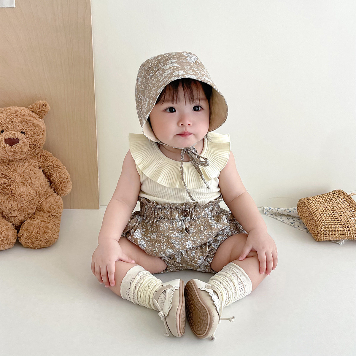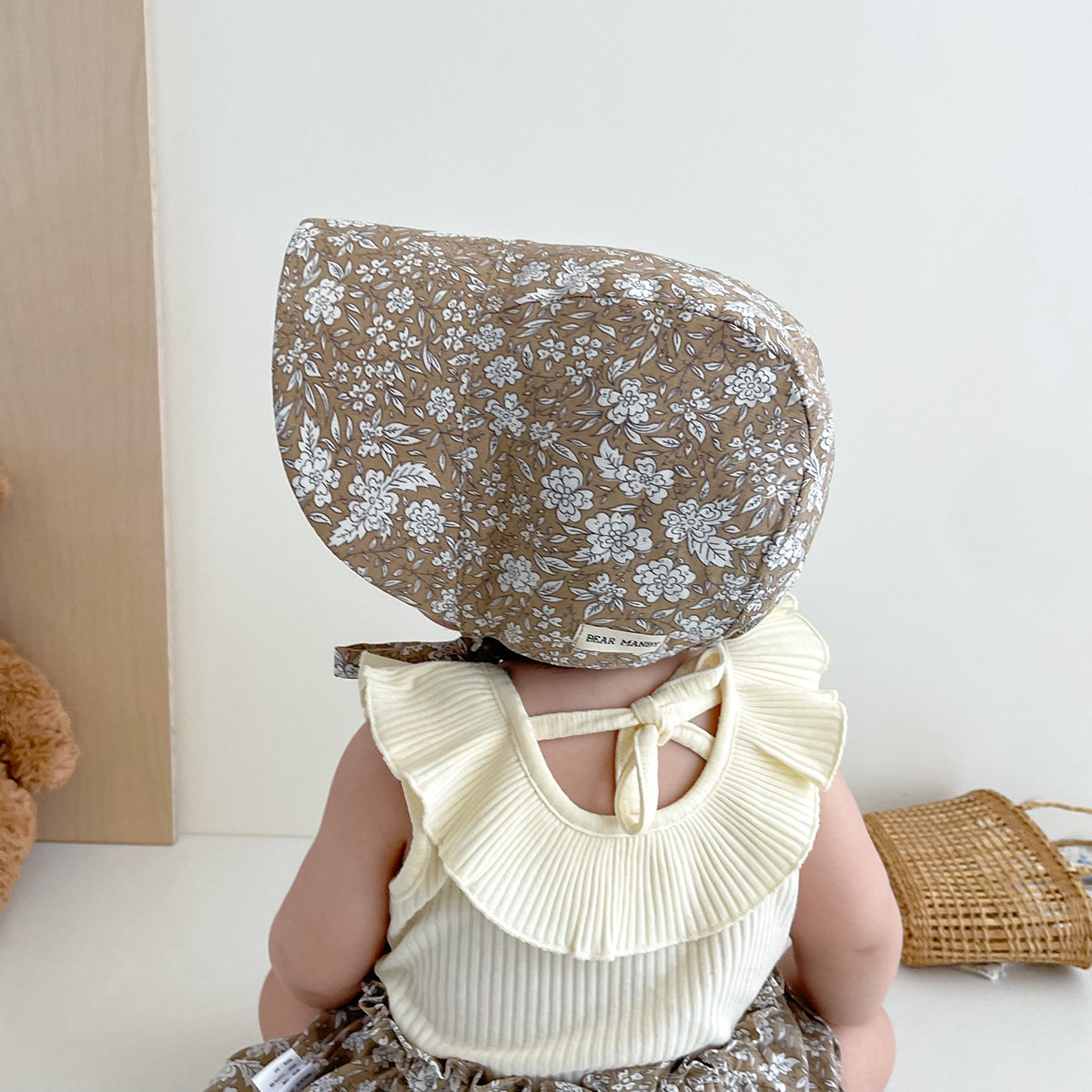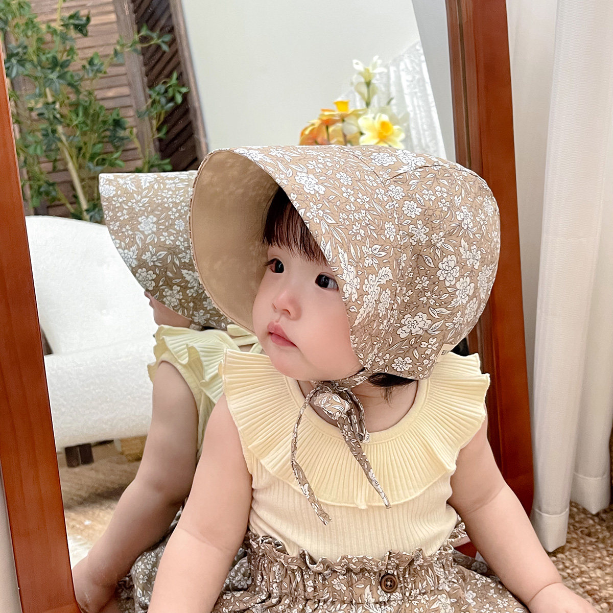 婴儿遮阳帽棉麻小碎花薄款防晒大檐双面儿童女宝宝太阳帽短裤夏季