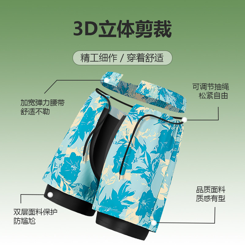 2025新款男士双层防尴尬温泉海边度假专业大码遮肉泳衣游泳沙滩裤