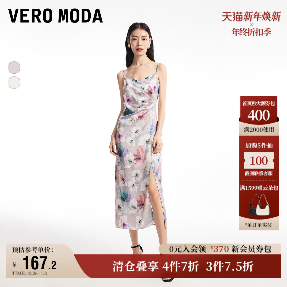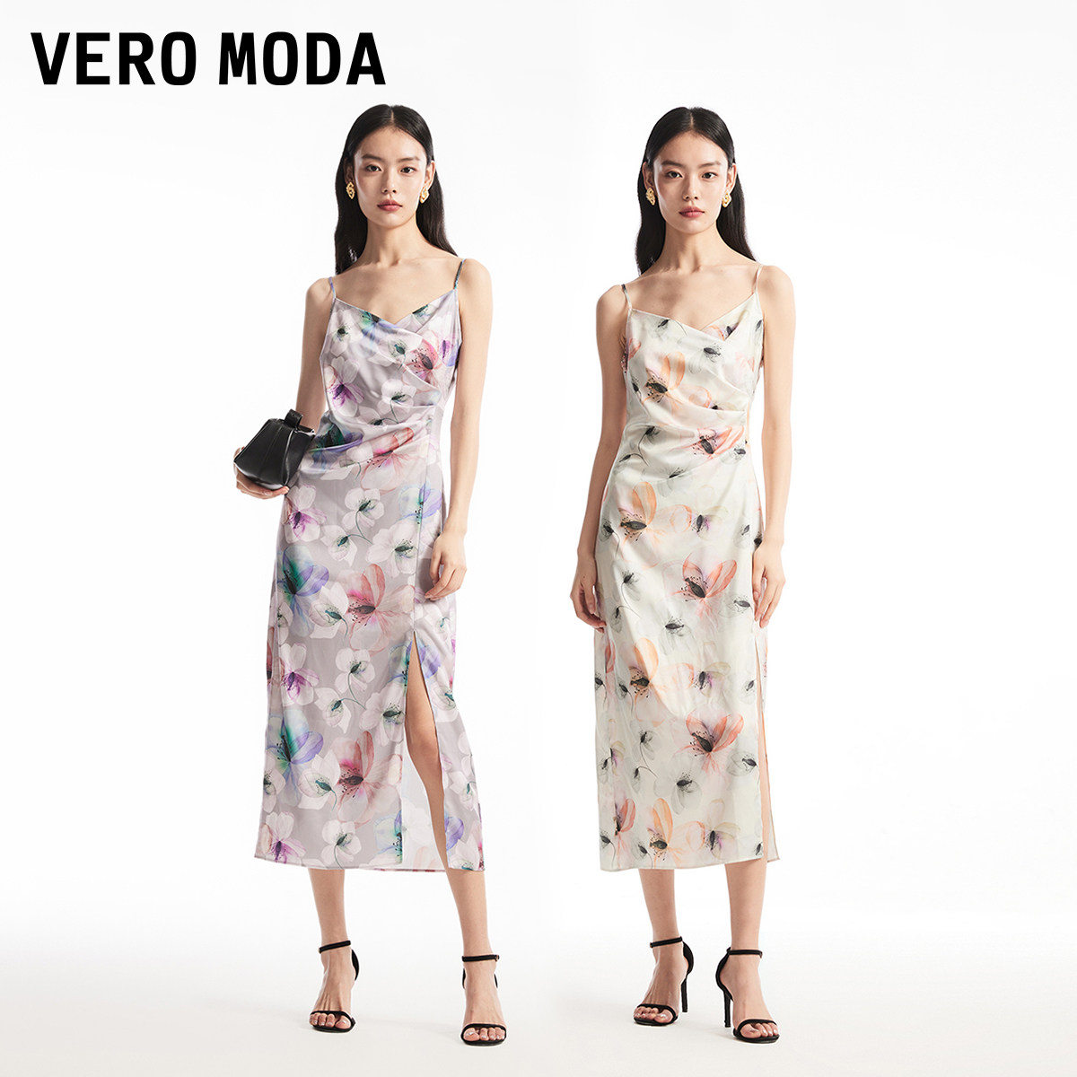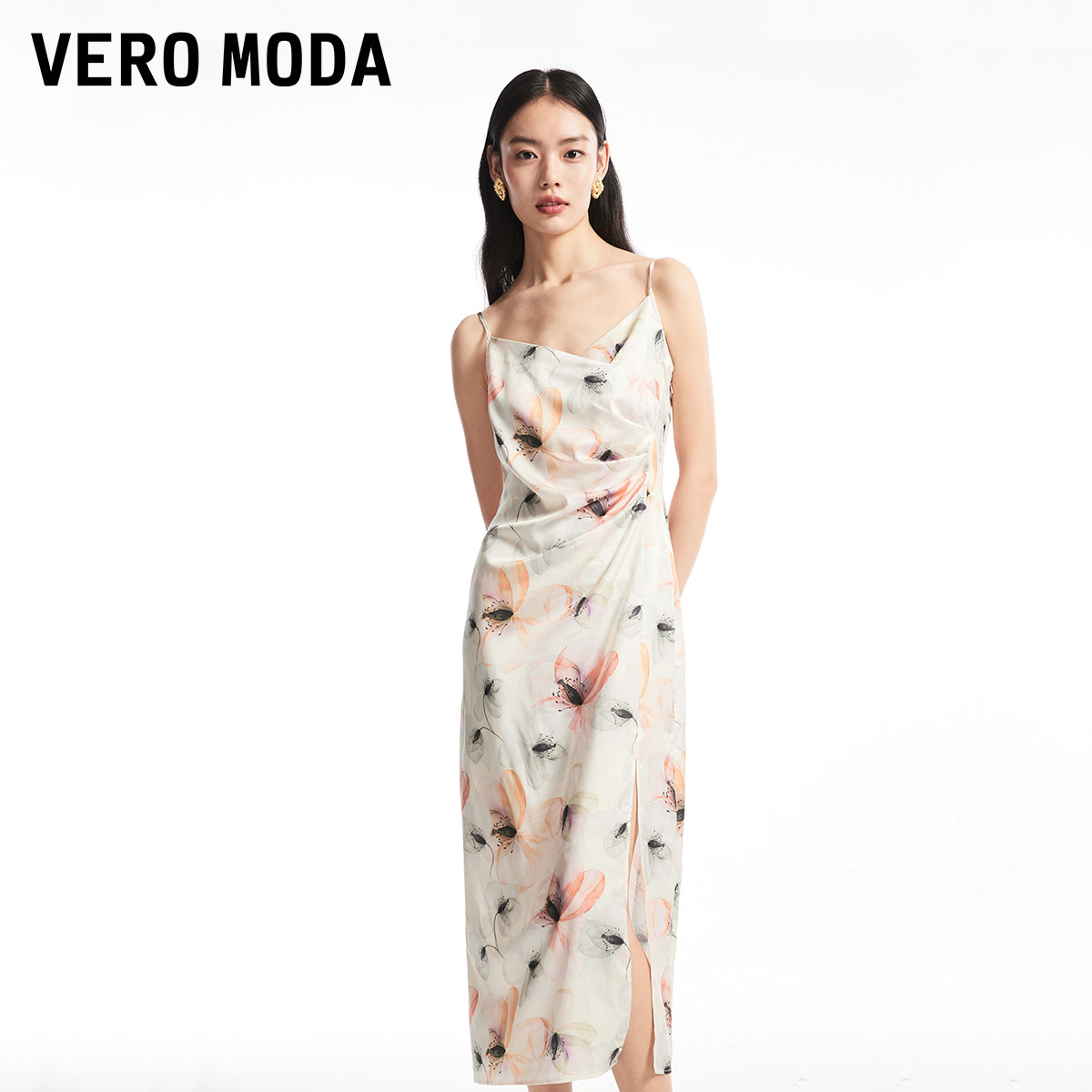 Vero Moda奥莱吊带连衣裙秋冬新款V领印花度假风侧开叉裙子流行