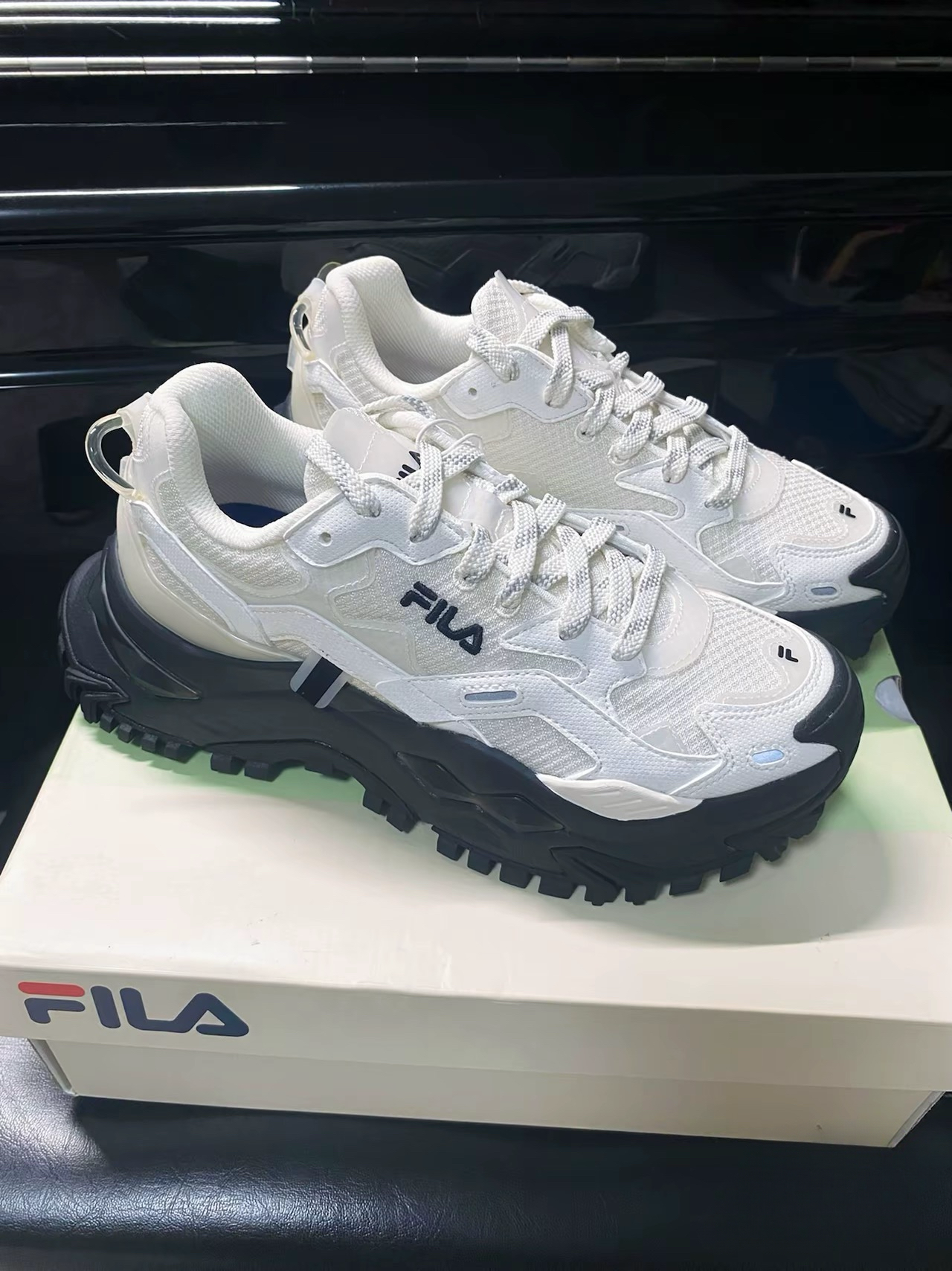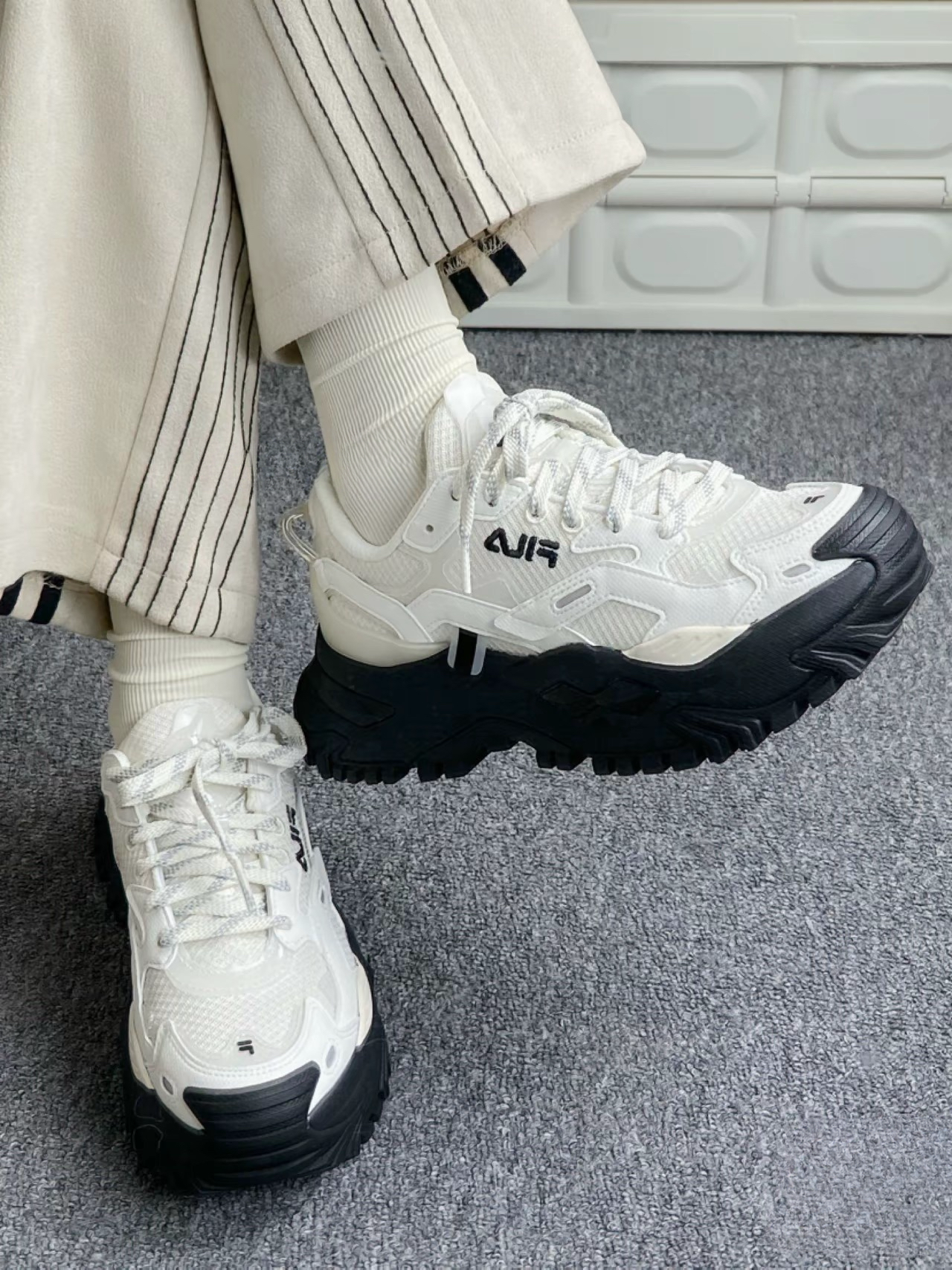 斐乐FILA潮牌硬糖鞋女鞋低帮老爹鞋复古时尚运动鞋百搭增高休闲鞋