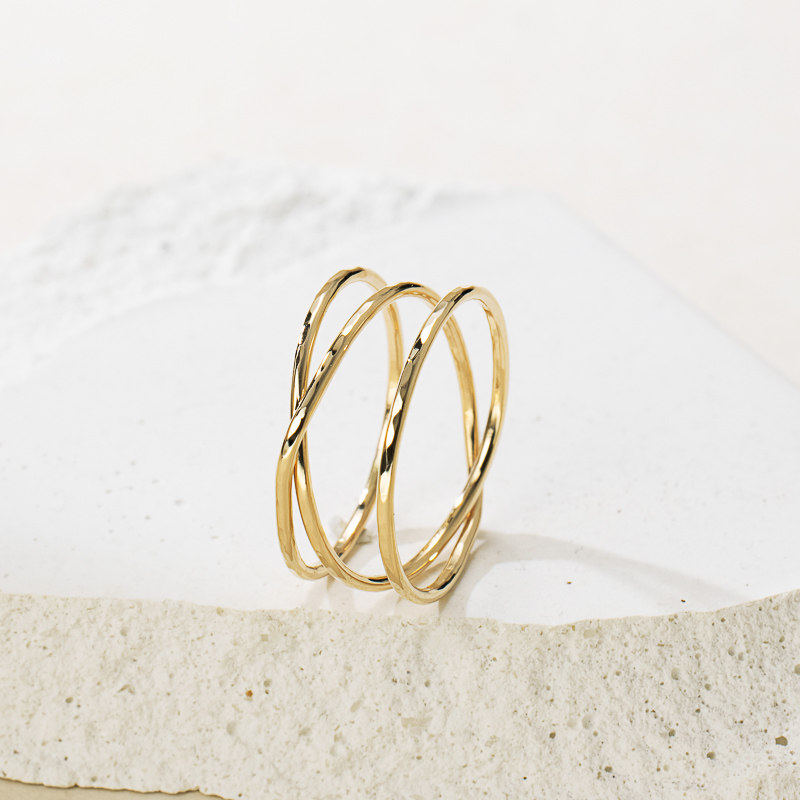 14K包金多层切面交叉缠绕戒指女 欧美冷淡风小众设计高级感尾戒