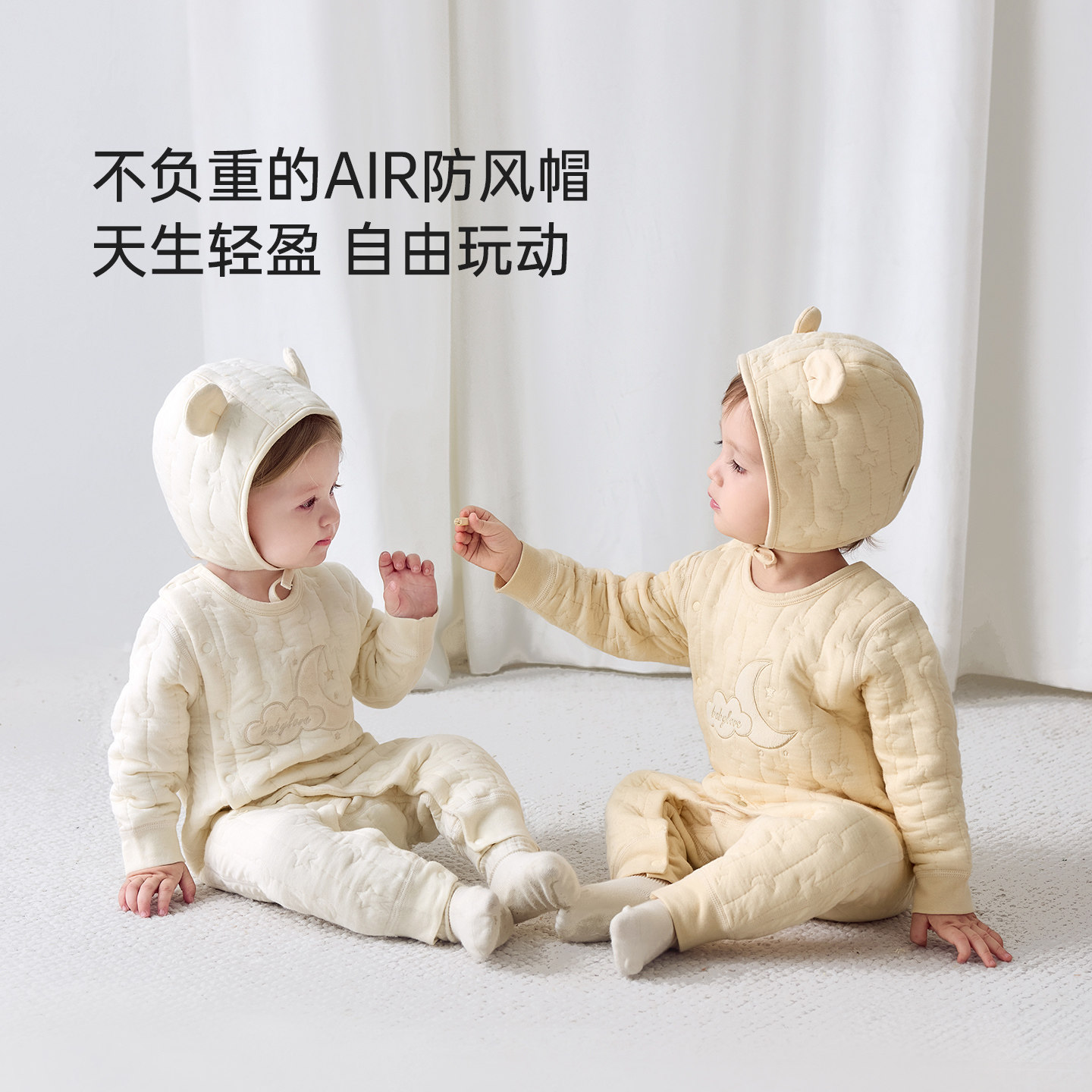 babylove婴儿防风帽秋冬宝宝薄夹棉保暖帽子纯色百搭护耳帽包头帽