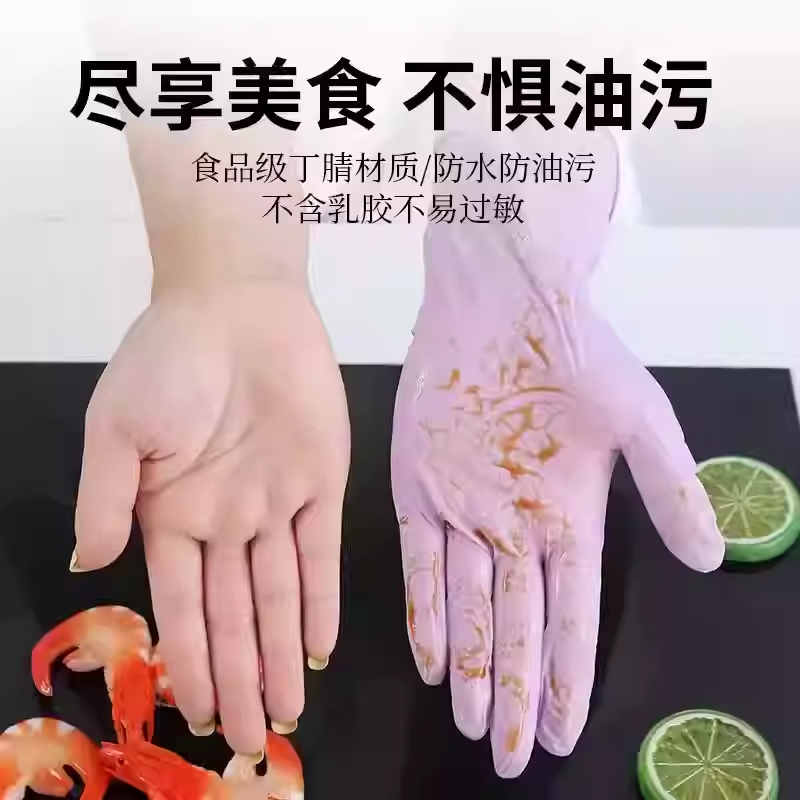 丁腈手套加厚耐用一次性食品级餐饮厨房手套防水耐油耐磨加长洗碗
