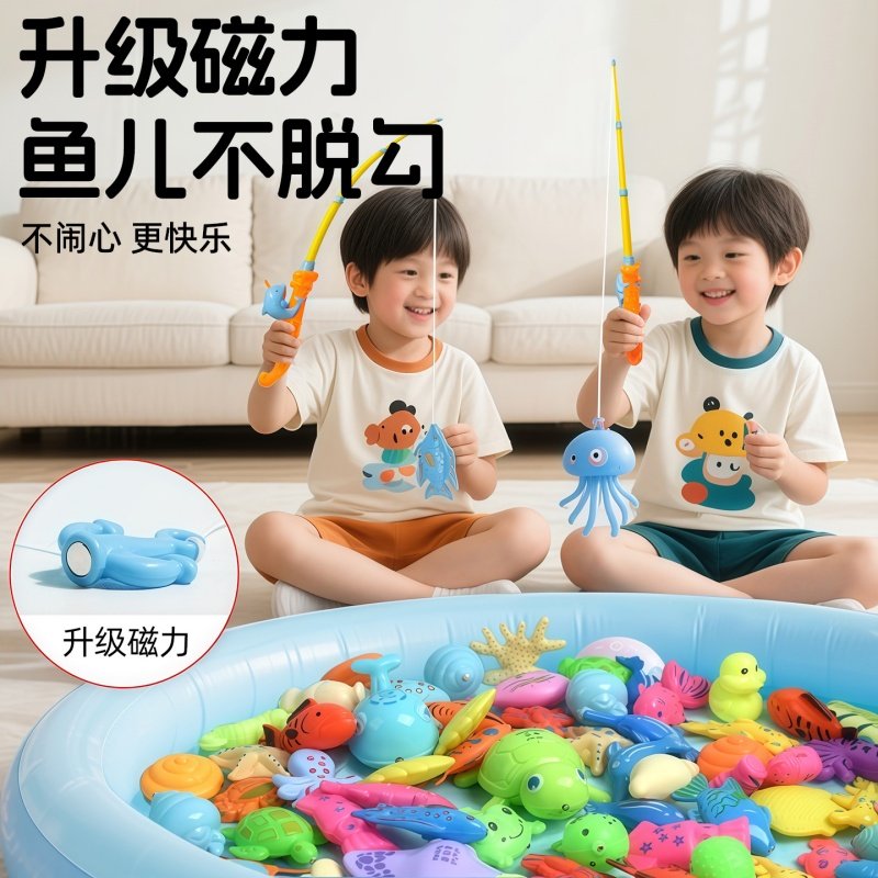 钓鱼玩具儿童益智磁吸大号捞鱼竿男女孩宝宝早教婴儿洗澡水池礼物