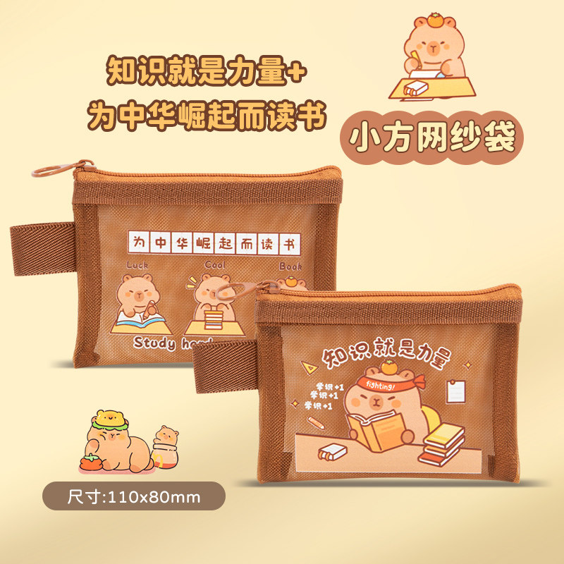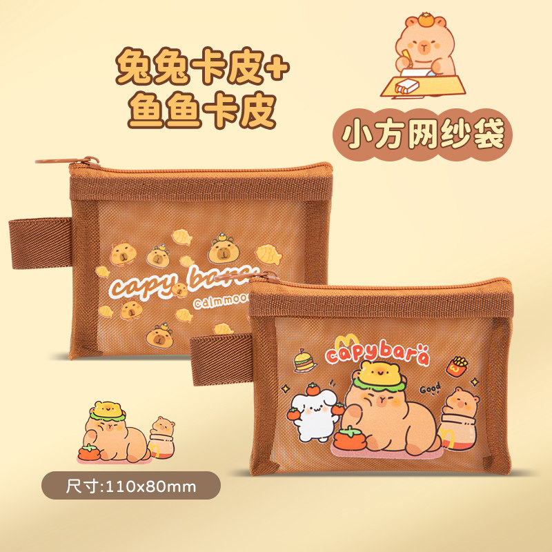 卡皮巴拉迷你小号零钱包网纱文件袋随身便携