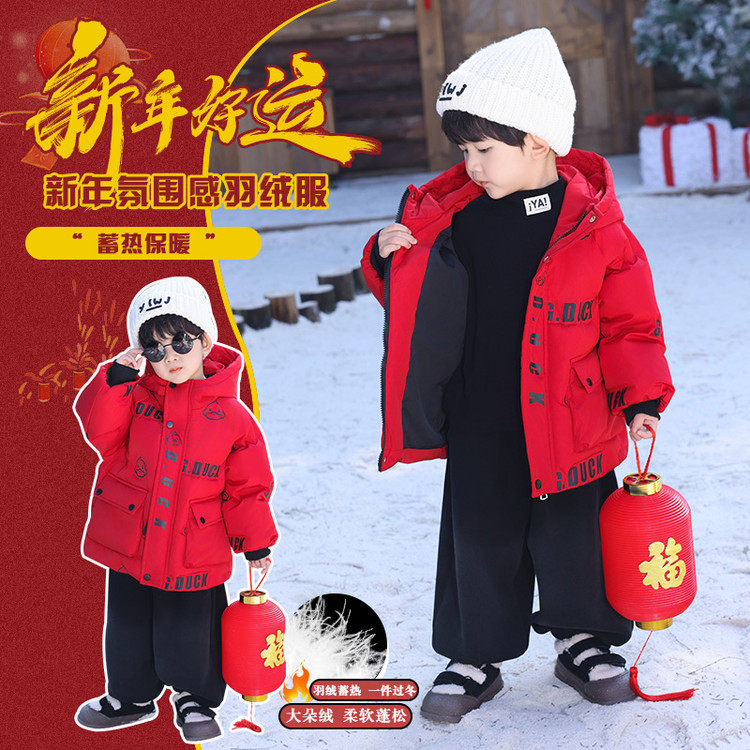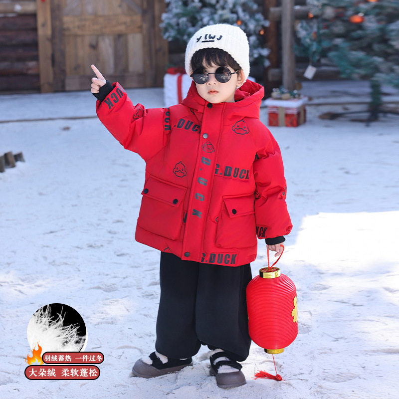 男童冬装压花小黄鸭羽绒服儿童白鸭绒加厚保暖棉衣中小童棉服A194