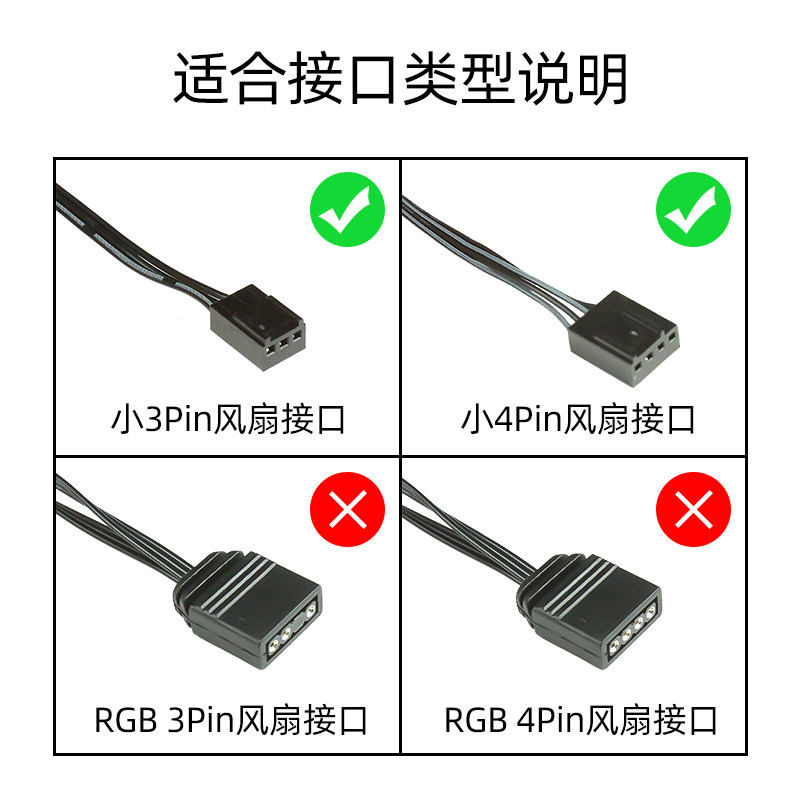 动力火车电脑机箱风扇集线器4pin主板一分三拖3风扇一分二转接线