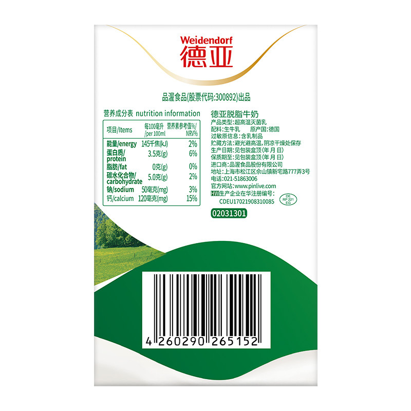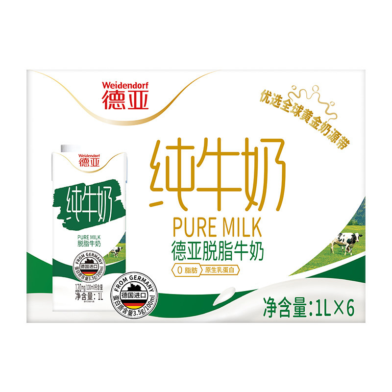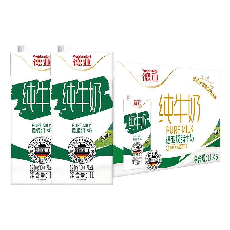 【进口】德国德亚脱脂牛奶高钙早餐纯牛奶健身