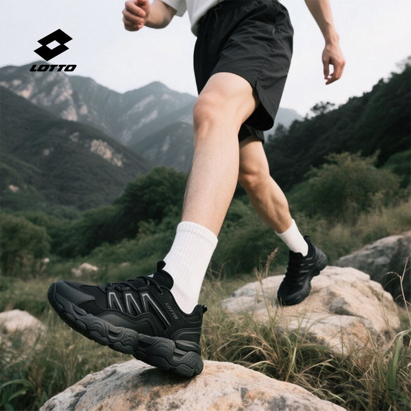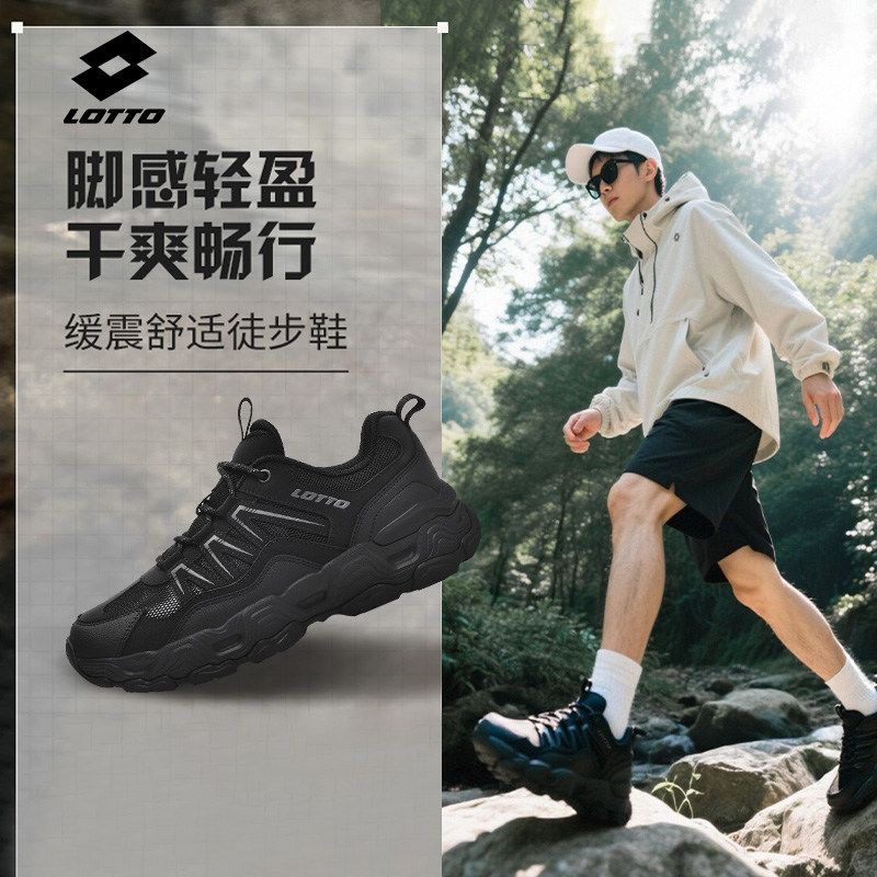 乐途男鞋运动鞋男2025新款秋季透气网面户外登山徒步黑色跑步鞋子