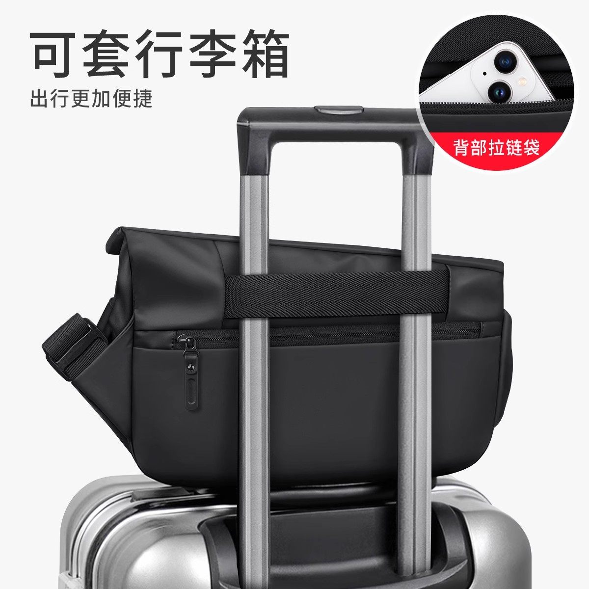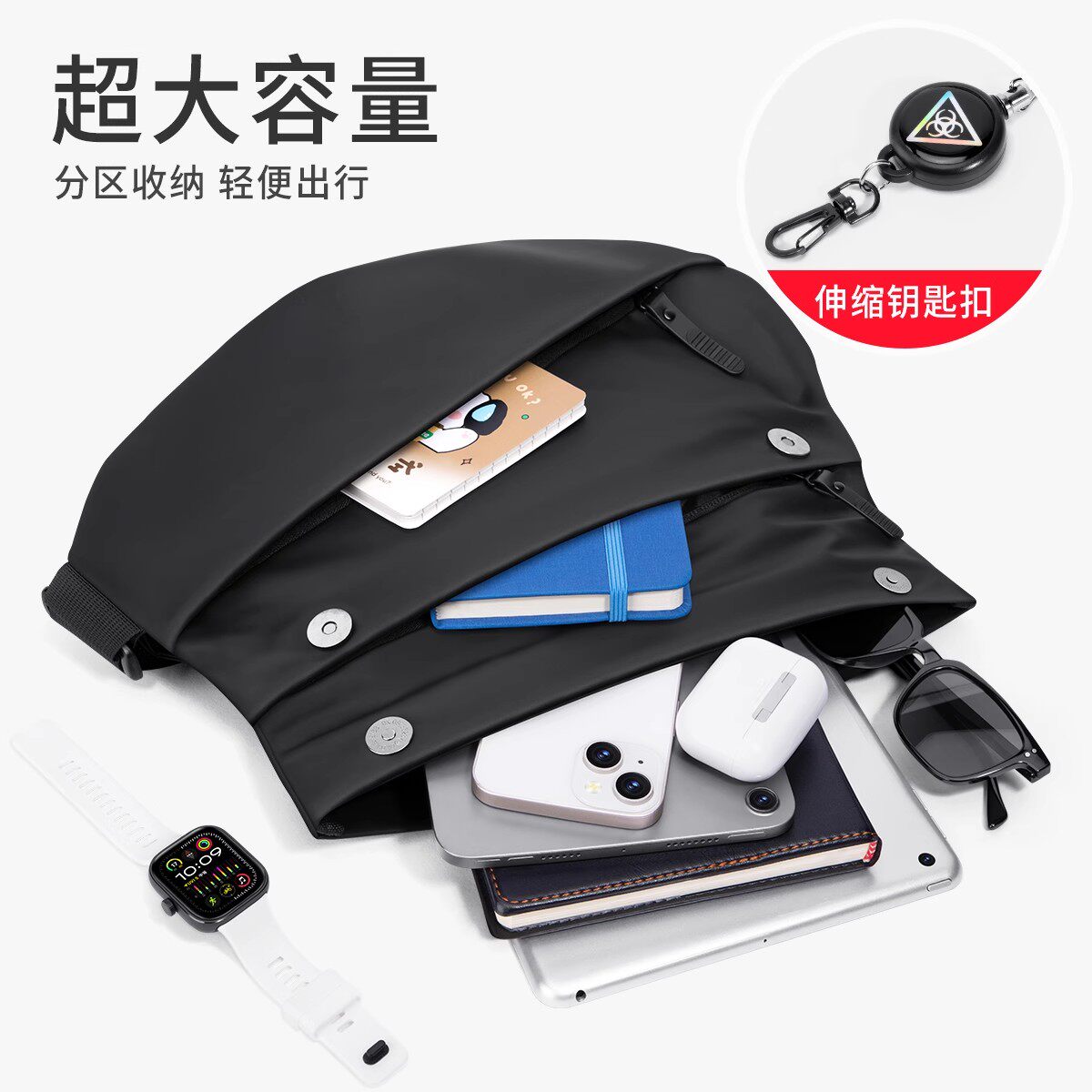 2025新款男士斜挎包防水运动单肩包休闲大容量胸包磁吸扣通勤时尚