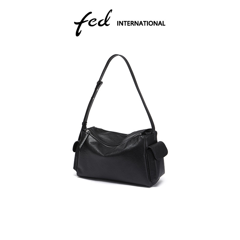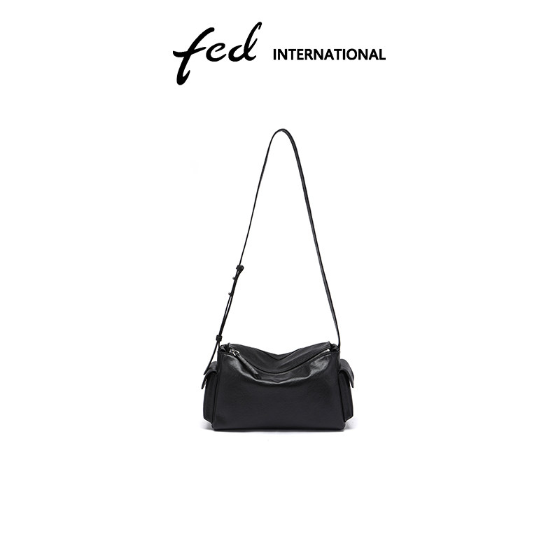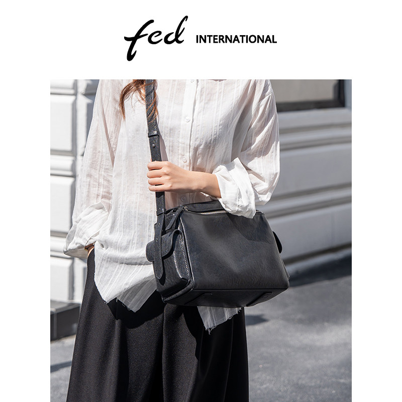 fed仿植鞣皮头层牛皮真皮斜垮单肩波士顿包雅丹风枕头包BFA9490