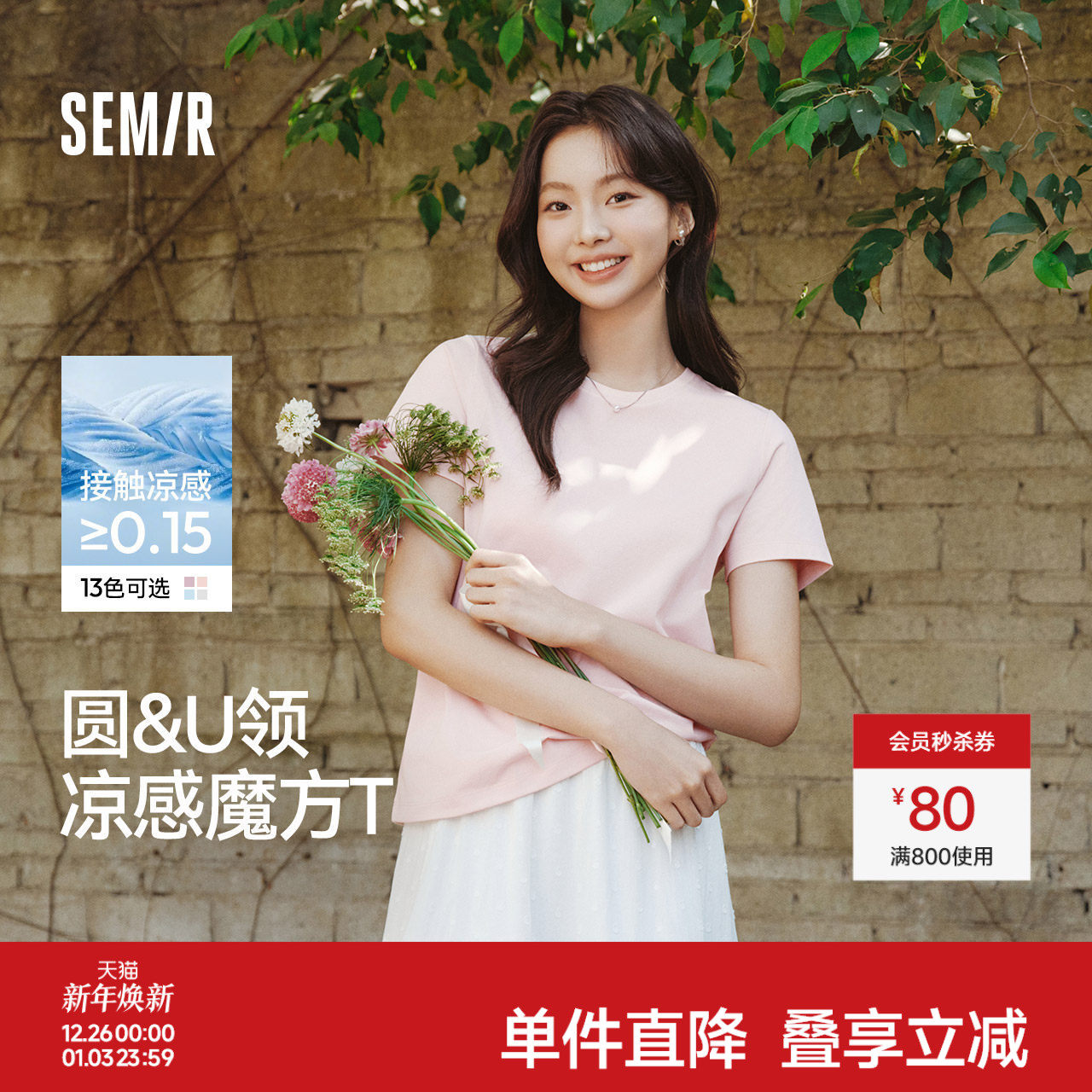 圆领/大U领多色可选 凉感吸湿速干遮热抗菌