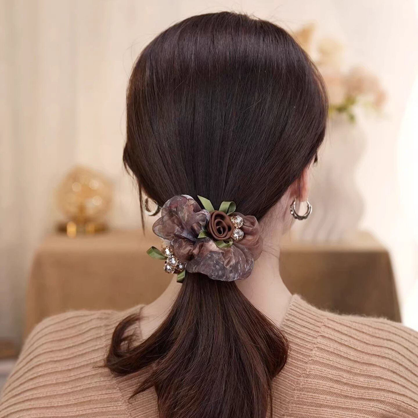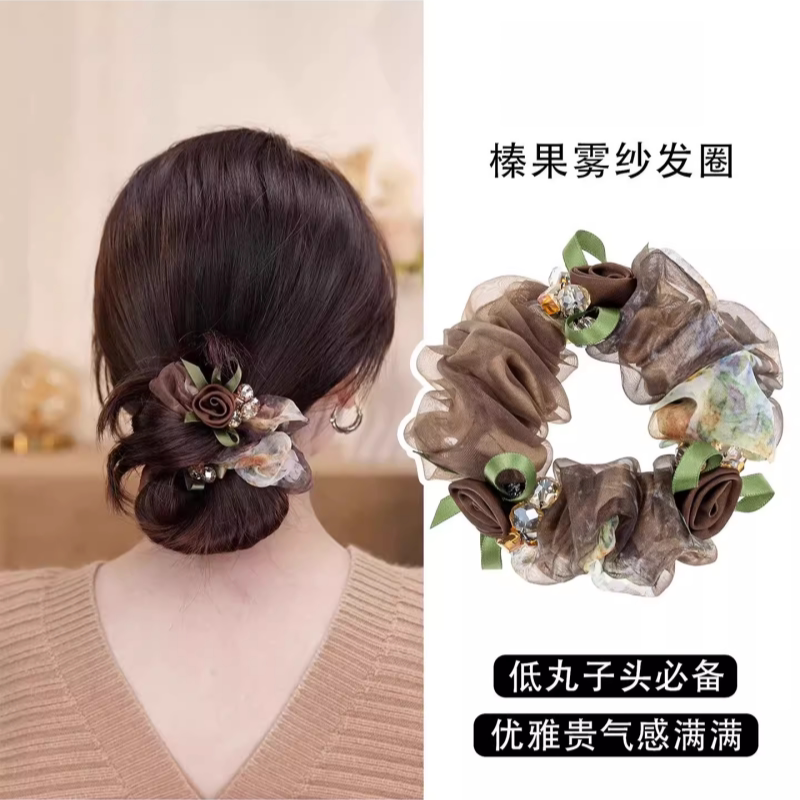 轻奢大肠发圈扎发头绳女女高级感马尾丸子头头花2026发饰咖色长发
