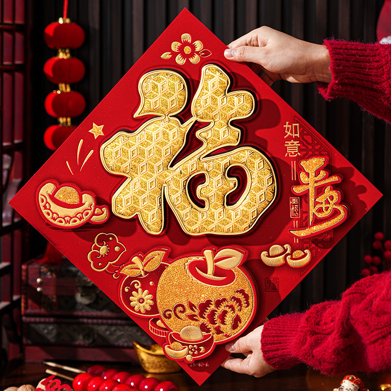 福字门贴2026新款马年立体入户大门福帖新年装饰春节过年国风墙贴